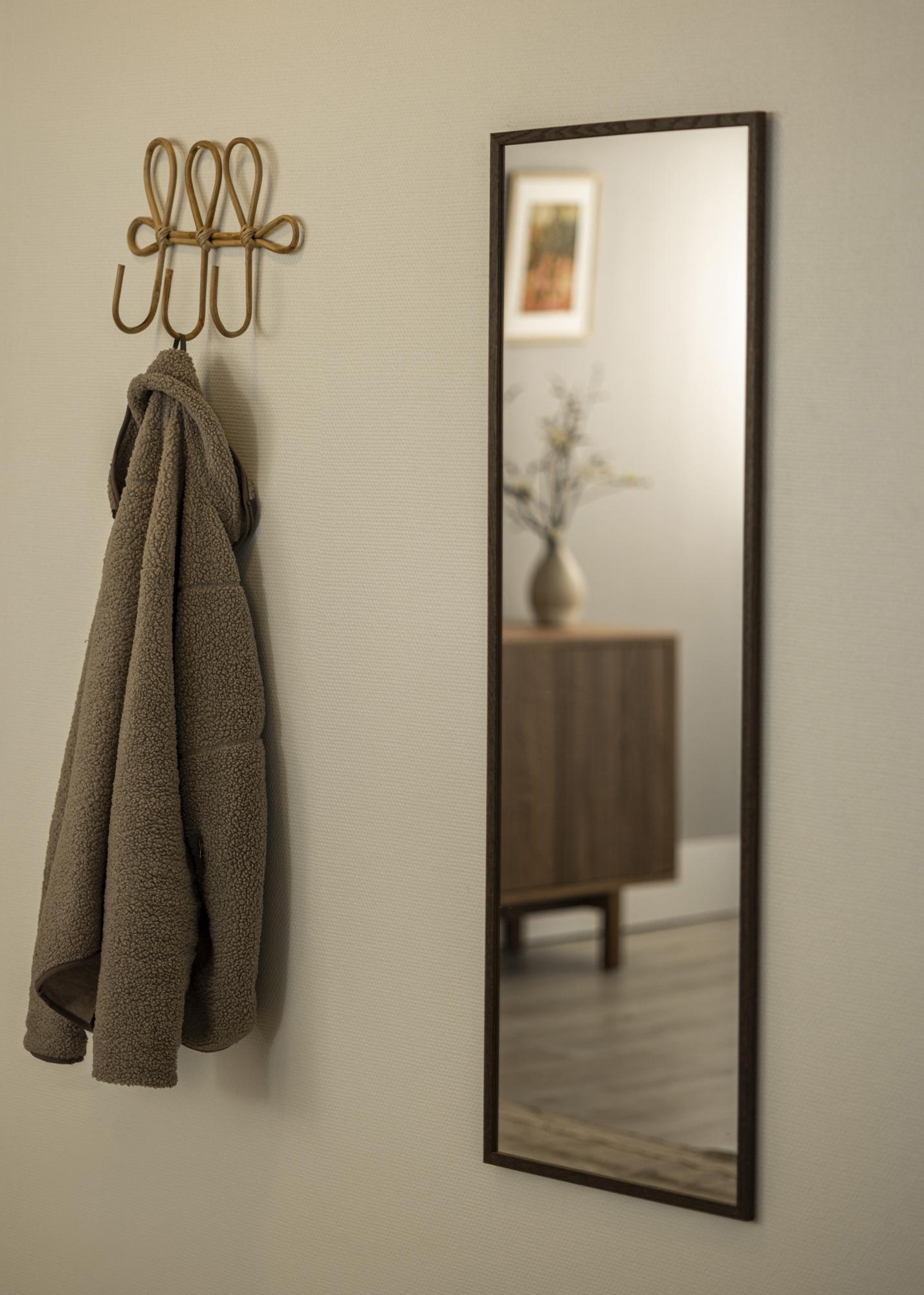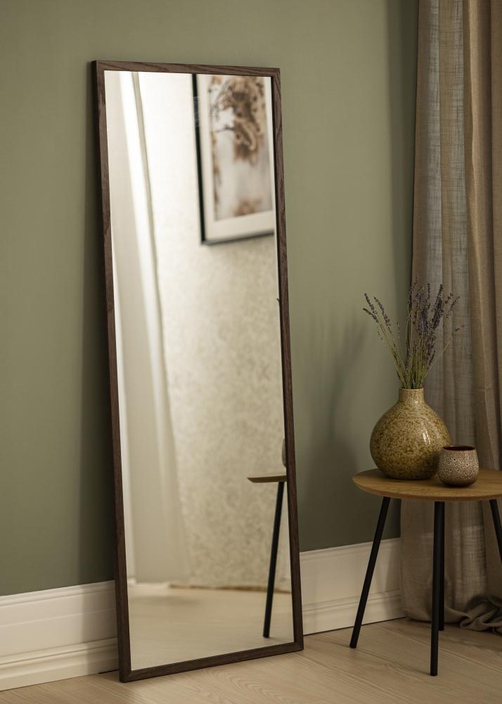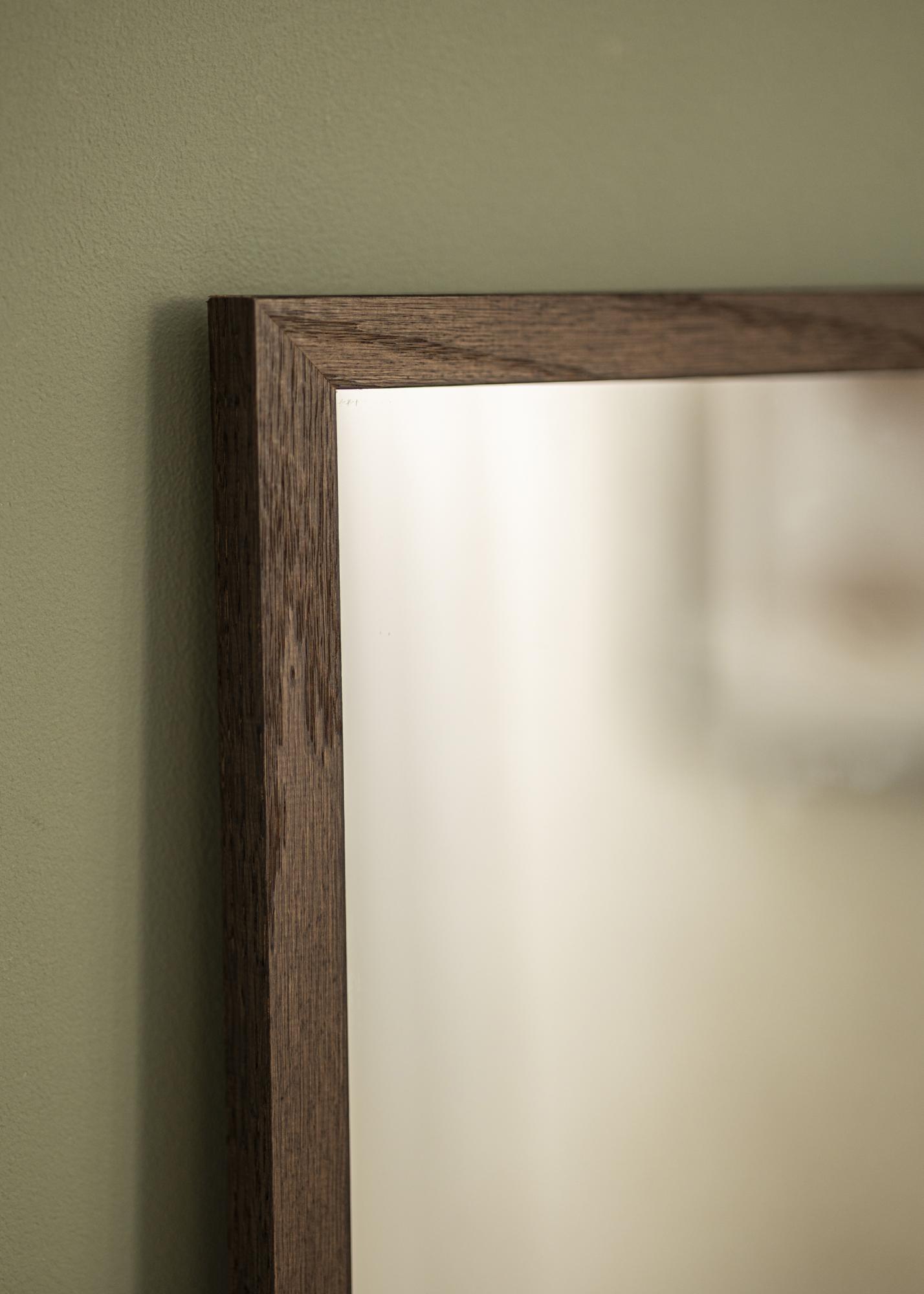 Okvir ogledala izraÄen je od pravog hrastovog drva i ima duboku tamnu nijansu hrasta koja odmah privlaÄi pogled. Debljina okvira doprinosi osjeÄaju robusnosti i daje ogledalu upadljivu prisutnost na zidu. Ovo ogledalo nije samo praktiÄan dodatak, veÄ i umjetniÄko djelo koje nadopunjuje i istiÄe vaÅ¡ interijer.