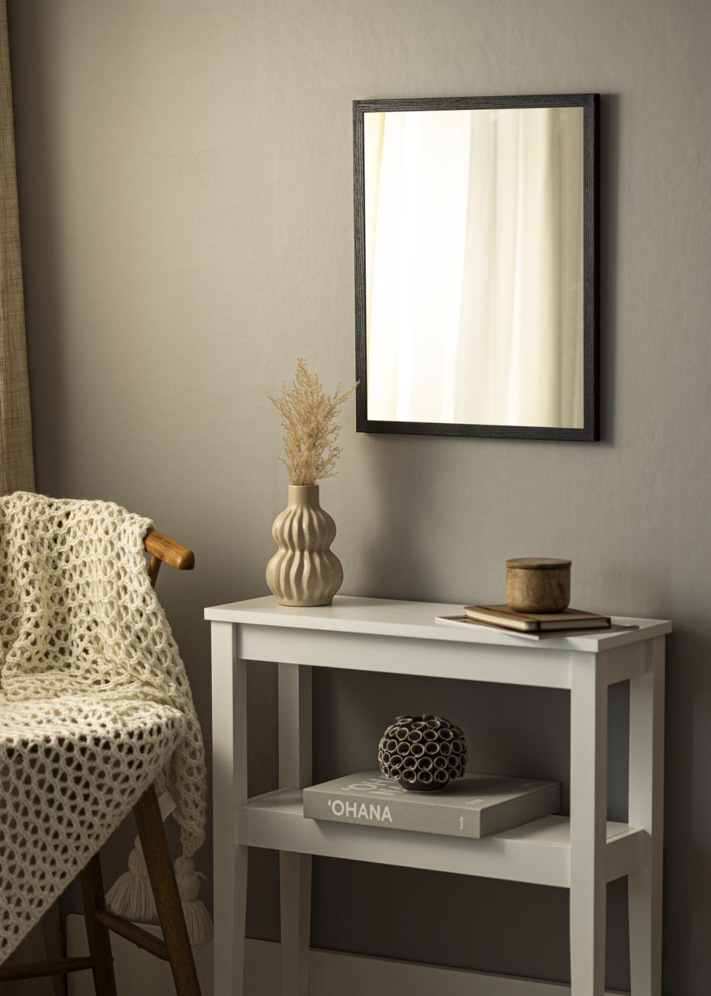Zrcalo Devon Crna je zrcalo po mjeri koje izrađujemo kako bismo zadovoljili vaše specifične potrebe. Svojom dubokom crnom bojom i jasnom drvenom strukturom, ovo zrcalo nudi prirodan i rustikalan osjećaj koji se lako uklapa u različite stilove uređenja. Mat završna obrada zajedno sa suptilnim godovima naglašava karakter drveta i daje elegantan dojam vašem domu.