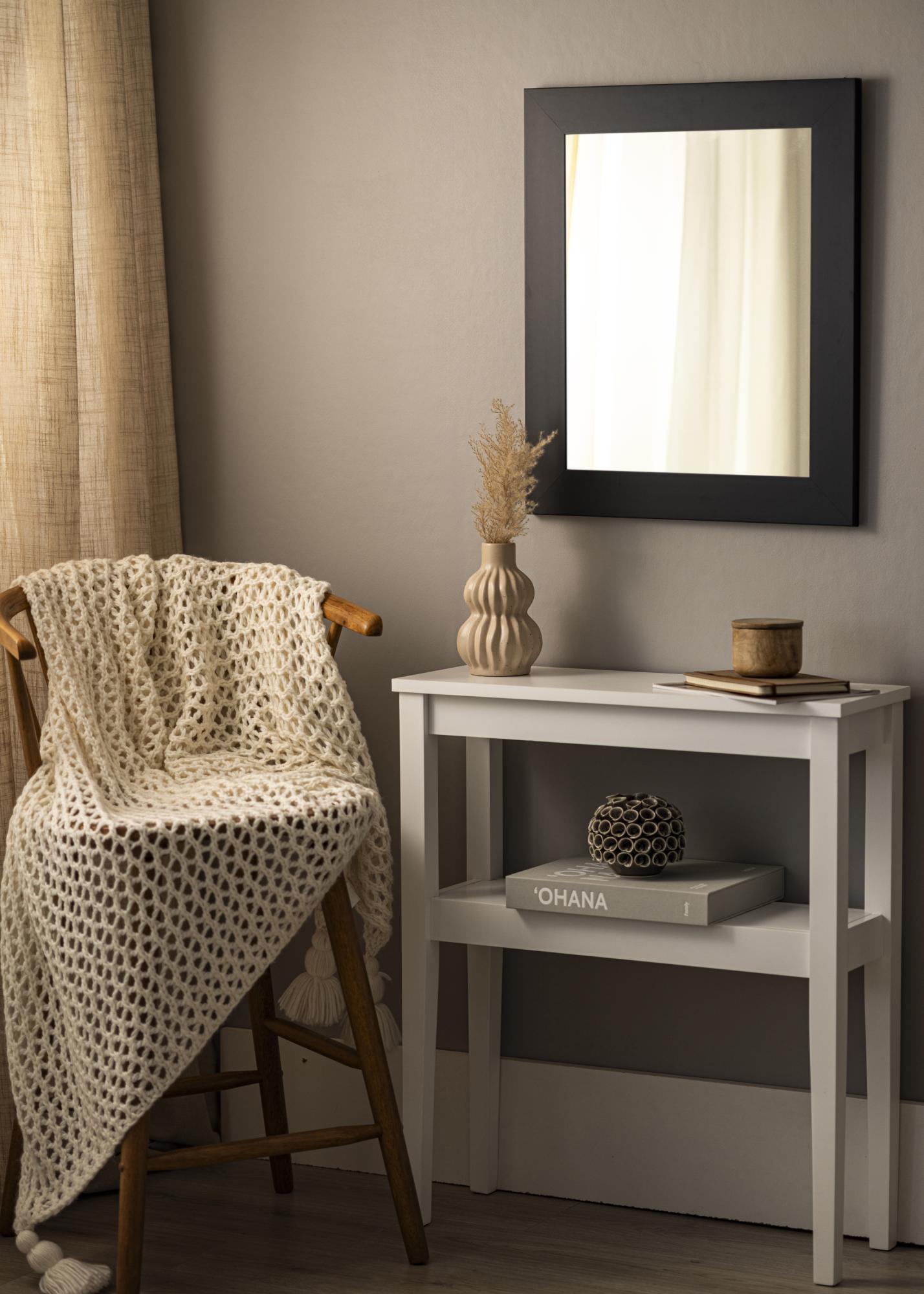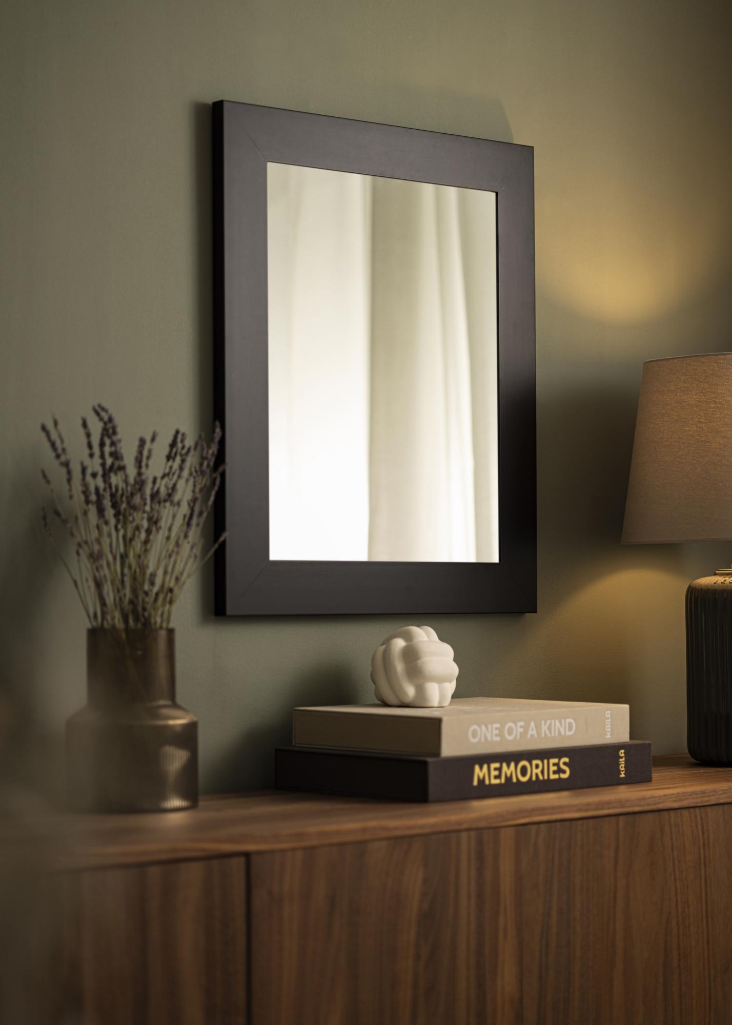 Ovo zrcalo ima elegantnu crnu boju koja ostavlja moderan i elegantan dojam. Okvir širine 69 mm u mat crnom Ayos drvu pridonosi sofisticiranom izgledu zrcala i čini ga izvrsnim dodatkom kako klasičnim, tako i modernim stilovima uređenja. Sa dubinom od 22 mm, zrcalo ima robusnu konstrukciju koja osigurava njegovu izdržljivost i stabilnost.