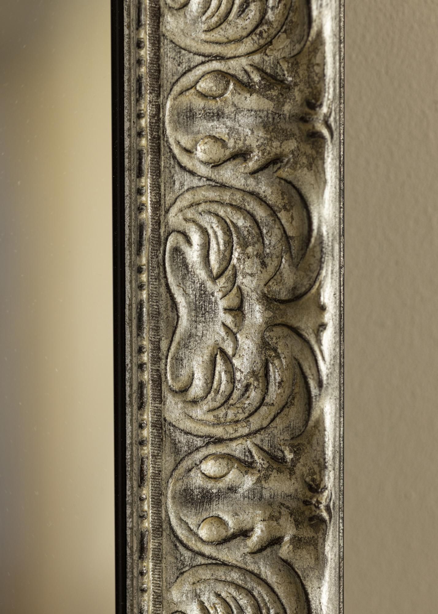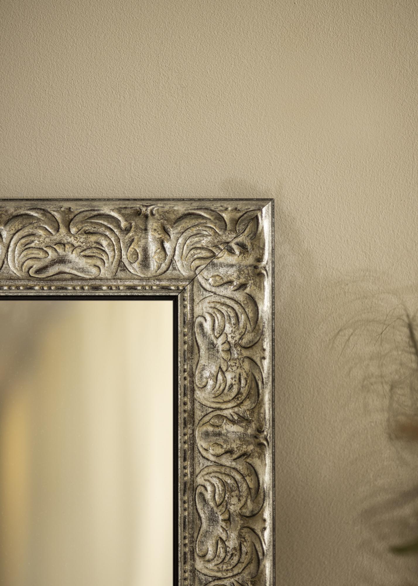 Zrcalo Durham Silver je prilagođeno zrcalo koje izrađujemo kako bismo odgovarali upravo vašim potrebama. Sa svojim srebrnim okvirom i antiknim završnim slojem, postaje elegantan dodatak bilo kojoj prostoriji. Ornamentirani reljef na okviru daje zrcalu jedinstveni karakter i doprinosi rustikalnom, ali ipak elegantnom osjećaju.