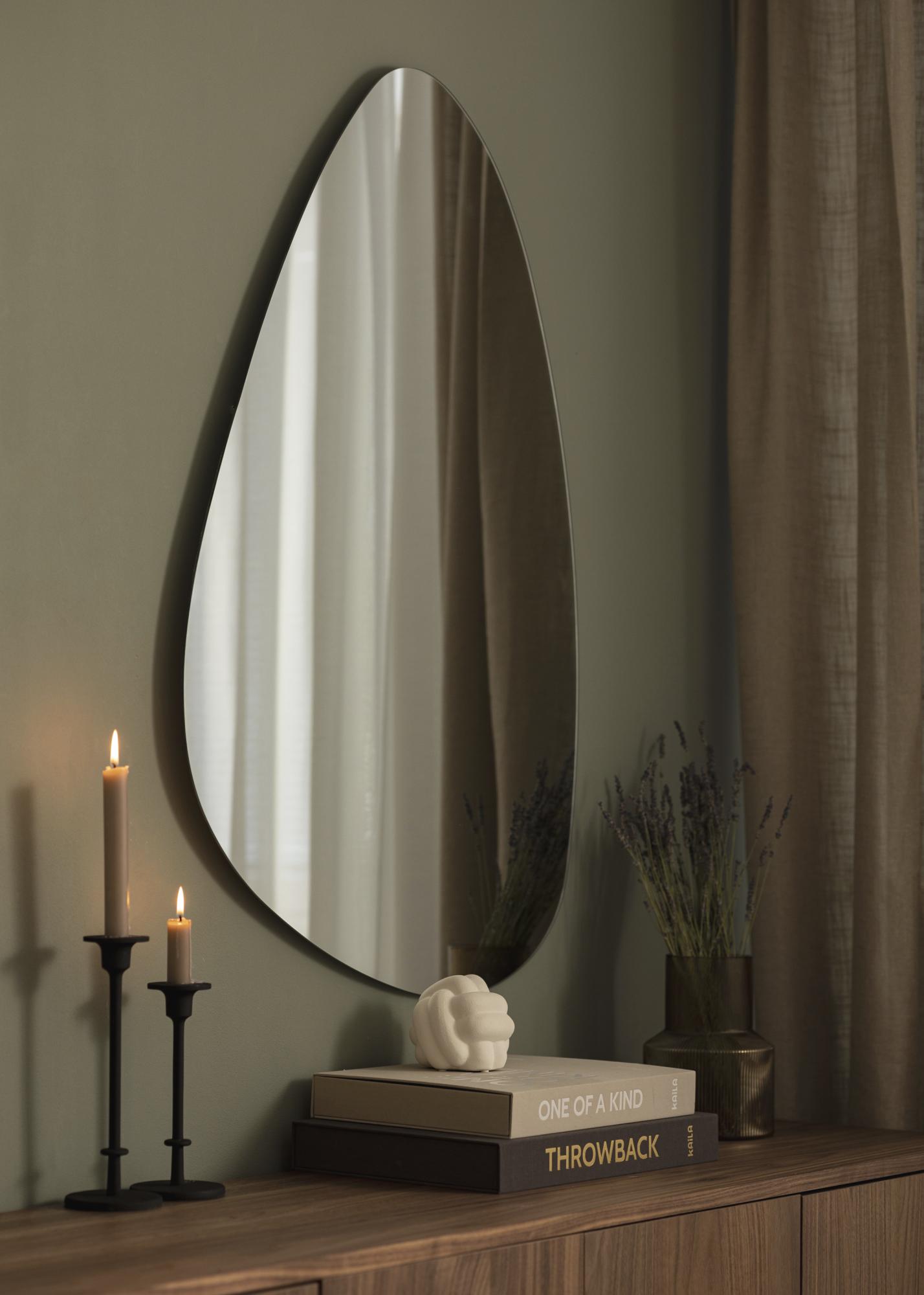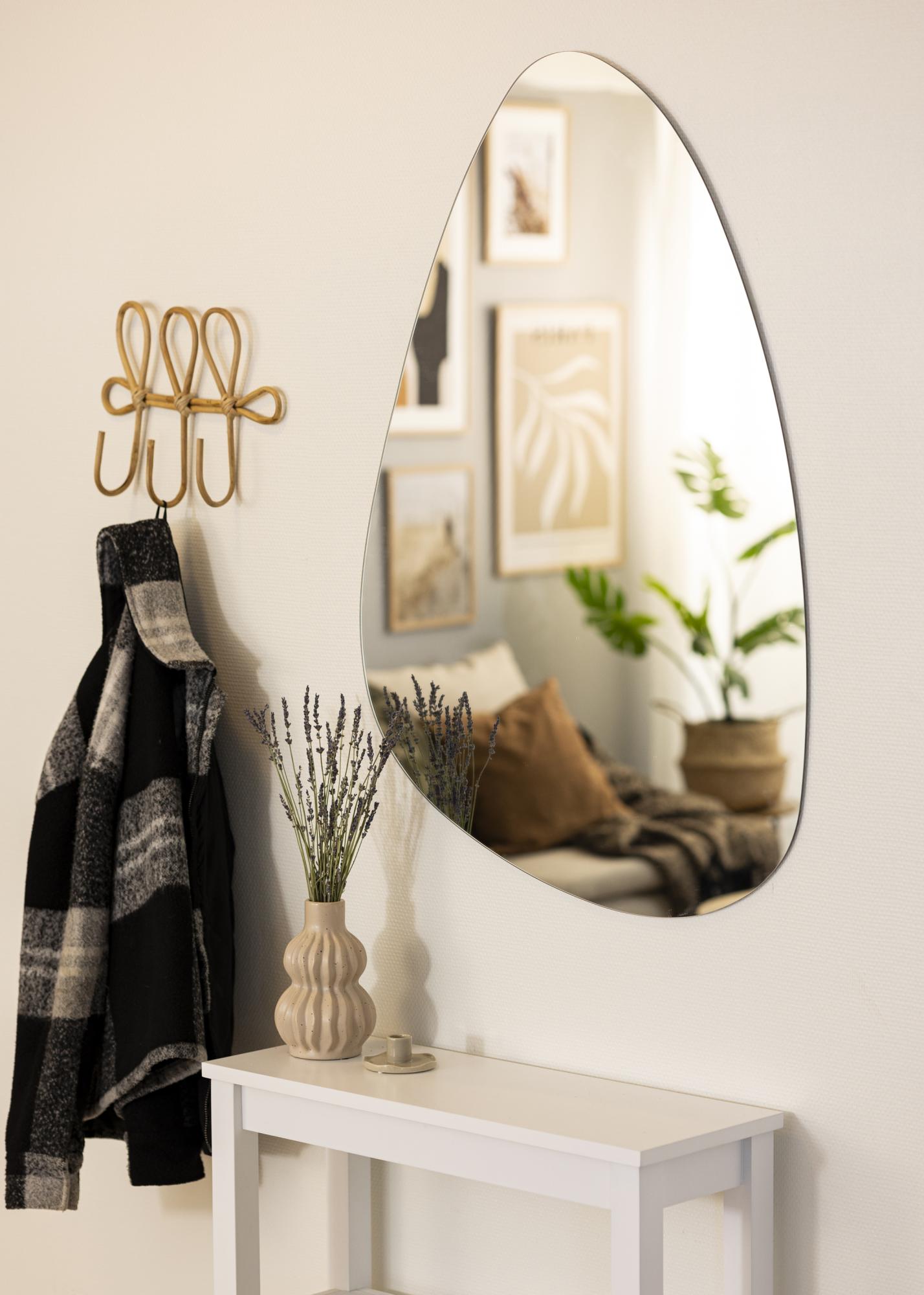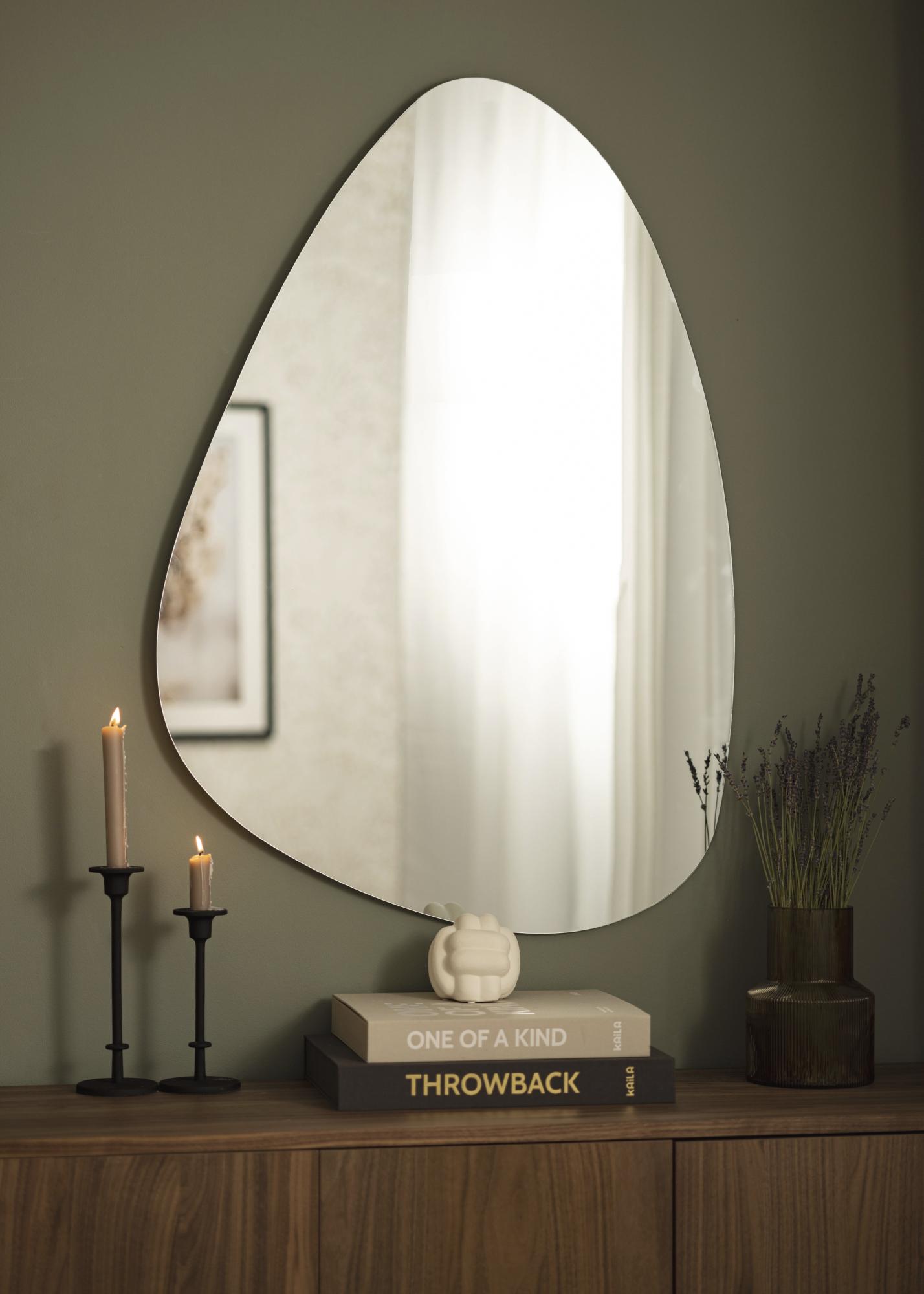 Ovo ogledalo je savršeno za vas koji tražite elegantno ogledalo u minimalističkom stilu. Asimetrični oblik kombinira se s tankim ogledalnim staklom i rubovima bez okvira, što daje vrlo elegantan izgled. Na stražnjoj strani nalaze se zidni nosači.