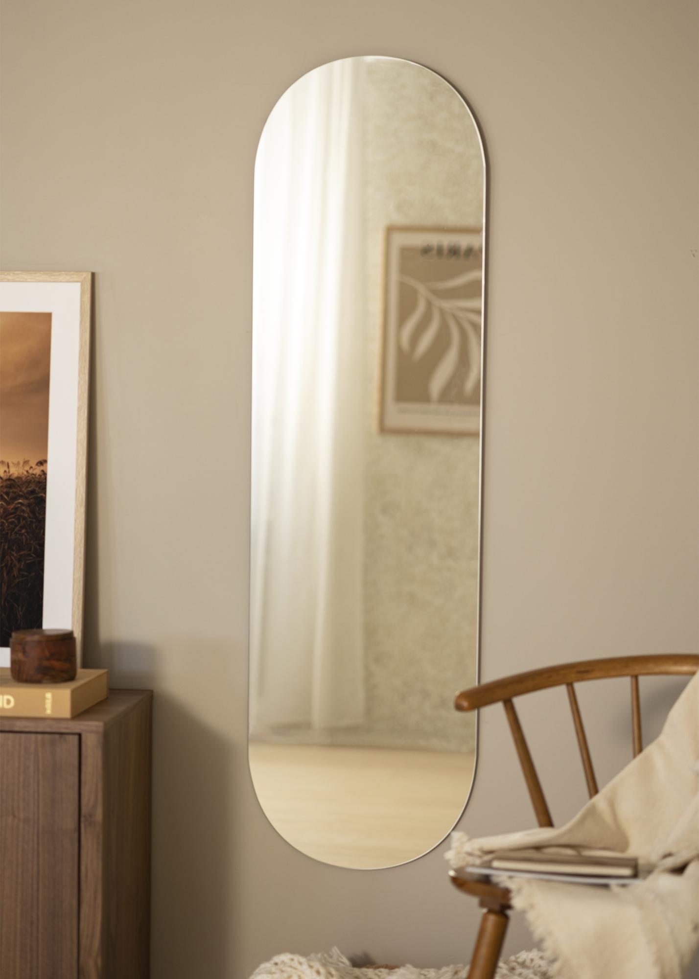 Otkrijte elegantno i svestrano zidno ogledalo dizajnirano da nadopuni svaku prostoriju u vaÅ¡em domu. Sa svojim velikoduÅ¡nim dimenzijama od 40x140 cm, ovo ogledalo nudi praktiÄnu i dekorativnu funkciju u vaÅ¡em prostoru. Njegov organski i izduženi oblik s zaobljenim rubovima i mekim zavojem na vrhu daje moderan i blag izgled koji se uklapa u razliÄite stilove ureÄenja.