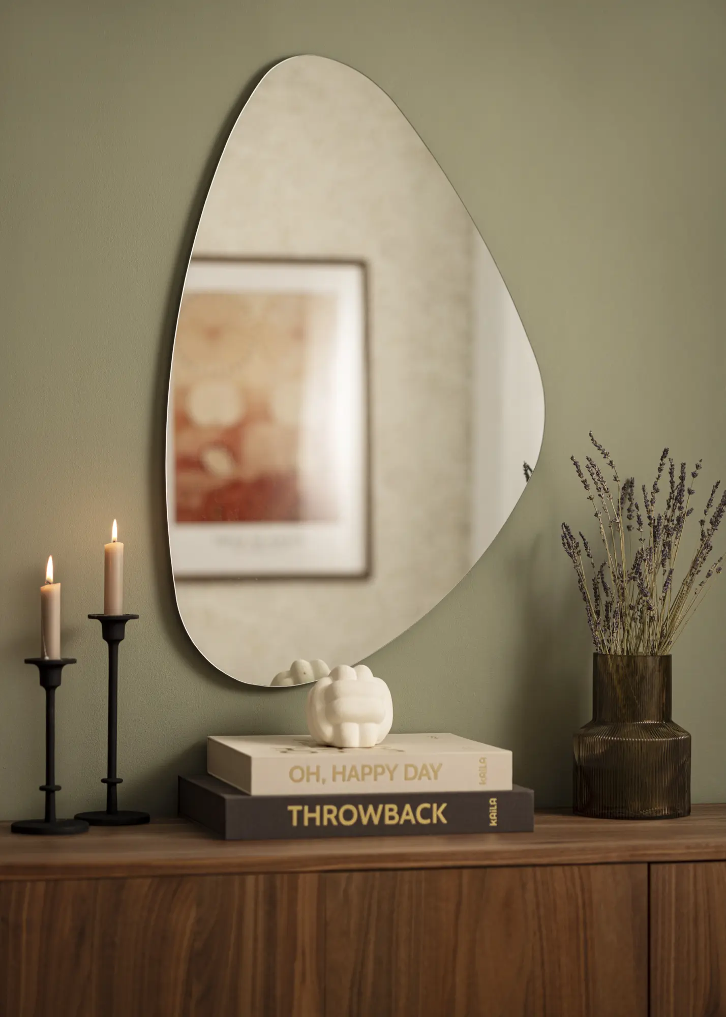 Otkrijte jedinstvenu Äar naÅ¡eg asimetriÄnog ogledala, pravog privlaÄitelja pažnje za svaku prostoriju. Sa svojim valovitim rubovima, ovo ogledalo nudi mekani i moderni profil koji nadopunjuje razne stilove ureÄenja interijera. Ono nije samo praktiÄan dodatak, veÄ i umjetniÄko djelo koje uljepÅ¡ava vaÅ¡ zid.