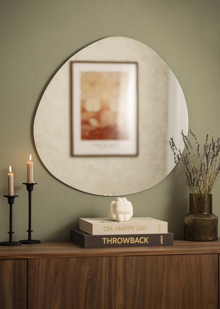 Otkrijte elegantno i svestrano ogledalo koje postaje prirodna žarišna točka u svakoj prostoriji. Sa svojim velikim dimenzijama od 70x70 cm, ovo ogledalo nudi praktičnu i dekorativnu funkciju u vašem domu. Njegov zaobljeni oblik s nježnim zakrivljenjem na vrhu donosi organski i opušten osjećaj prostoru, dok zadržava modernu estetiku.
