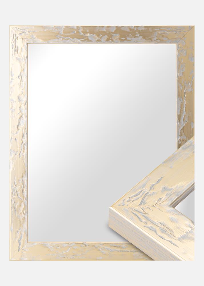 Freja je prekrasno zrcalo od zlata s neravnomjernom površinom s srebrnim neujednačenostima. Sa svojom kombinacijom srebrne i zlatne boje, Freja dobiva ugodnu nijansu koja više naginje srebru nego zlatu. Svojim dubokim profilom od 30 mm Freja Zlato izlazi malo iz zida što daje lijepu dubinu zrcalu.