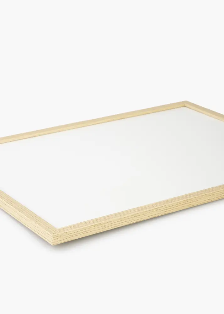 Površina s uzorkom hrasta daje zrcalu prirodan i elegantan osjećaj koji se uklapa u većinu stilova interijera. Okvir, širok 13 mm, obavija zrcalo na elegantan način bez da odvlači pažnju s same površine zrcala. S dubinom od 12 mm, zrcalo ima tanki profil koji ga čini lako postavljivim čak i u skučenijim prostorima.