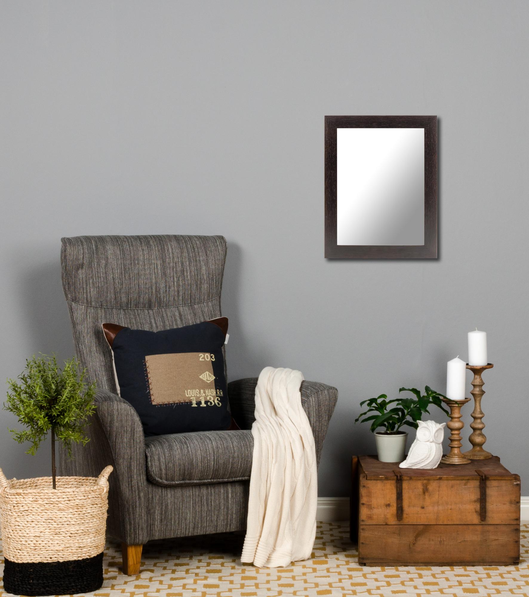Tamnosmeđe ogledalo stvara kontrast i dodaje karakter vašem zidu. Ovdje imamo elegantan model koji je jednako dobar u jednostavnom i minimalističkom domu kao i u onom šarenijem. Okvir je relativno širok i obojen je u tamnosmeđu boju kroz koju se može nazrijeti struktura drva. Budući da ga izrađuju vješti radnici u našoj vlastitoj radionici za okvire, možete očekivati lijepo ogledalo dobre kvalitete!