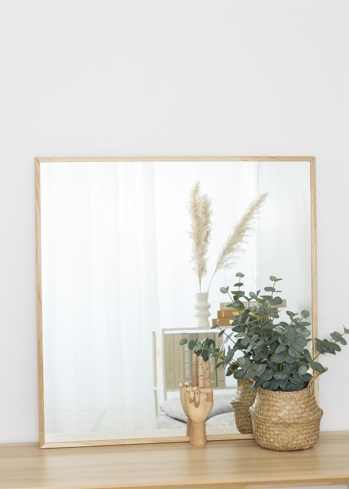 Ovo je zidno ogledalo s tankim drvenim okvirom, koje se odliÄno uklapa u moderna i viÅ¡e boemski ureÄen interijer. Ogledalo je prikaz skandinavskog dizajna u svom najboljem izdanju, s neobojenim ogledalnim staklom i svijetlim drvenim okvirom s ravnim profilom, Å¡to zajedno daje svijetao i svjež izgled.