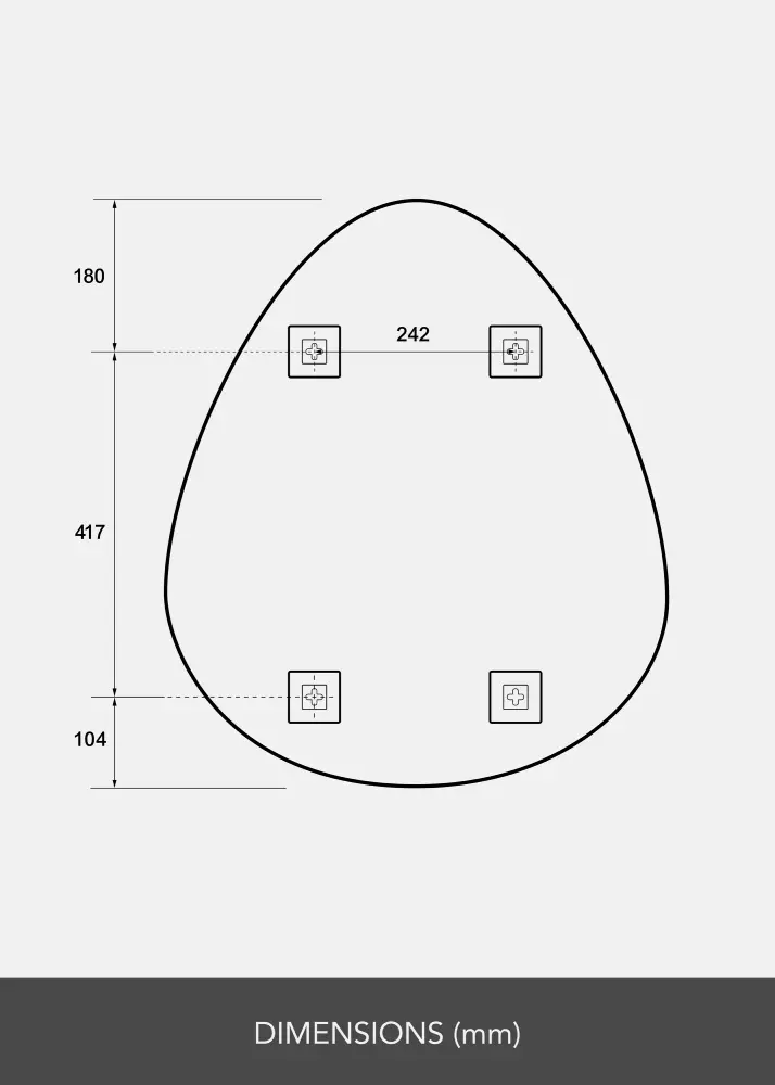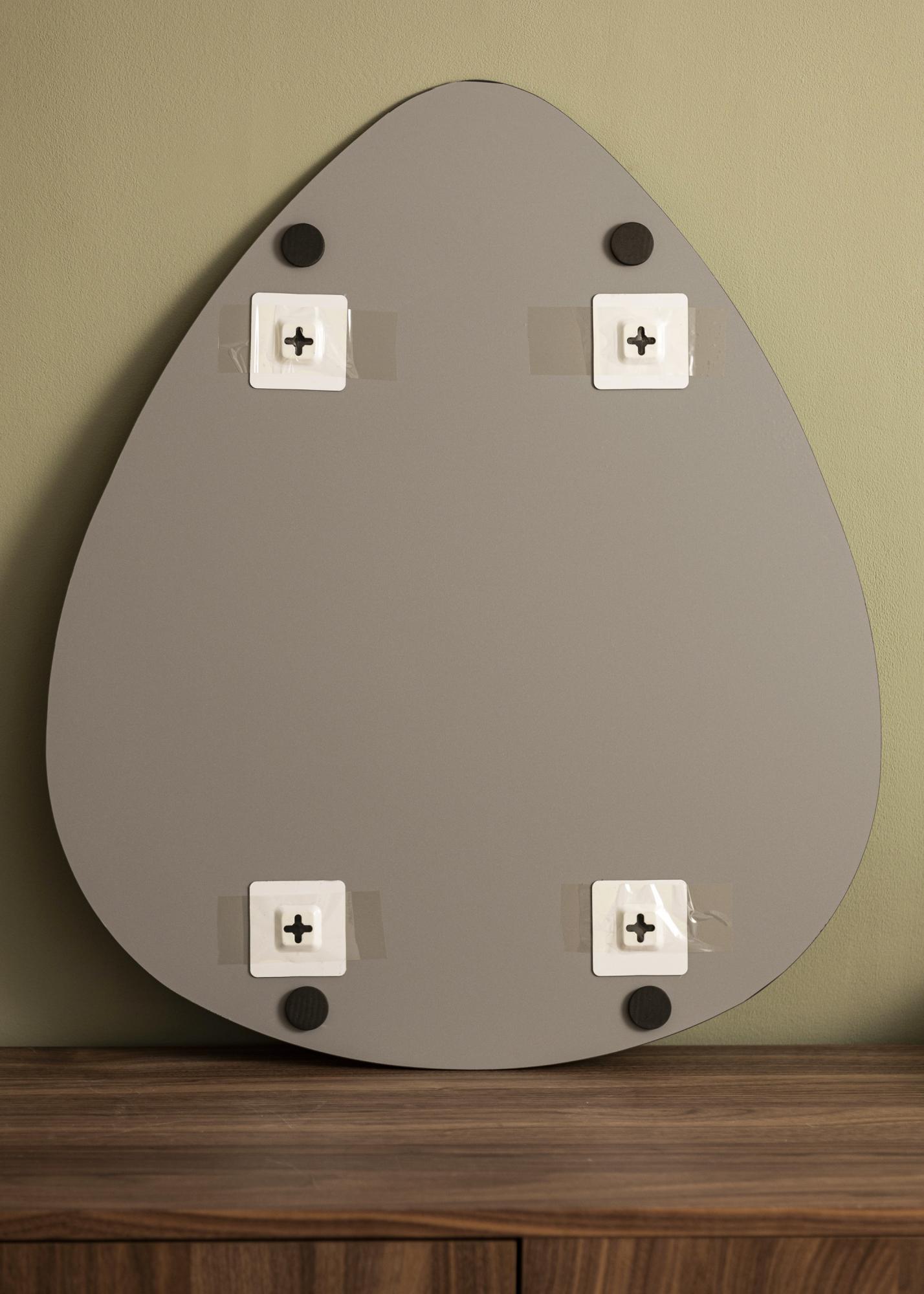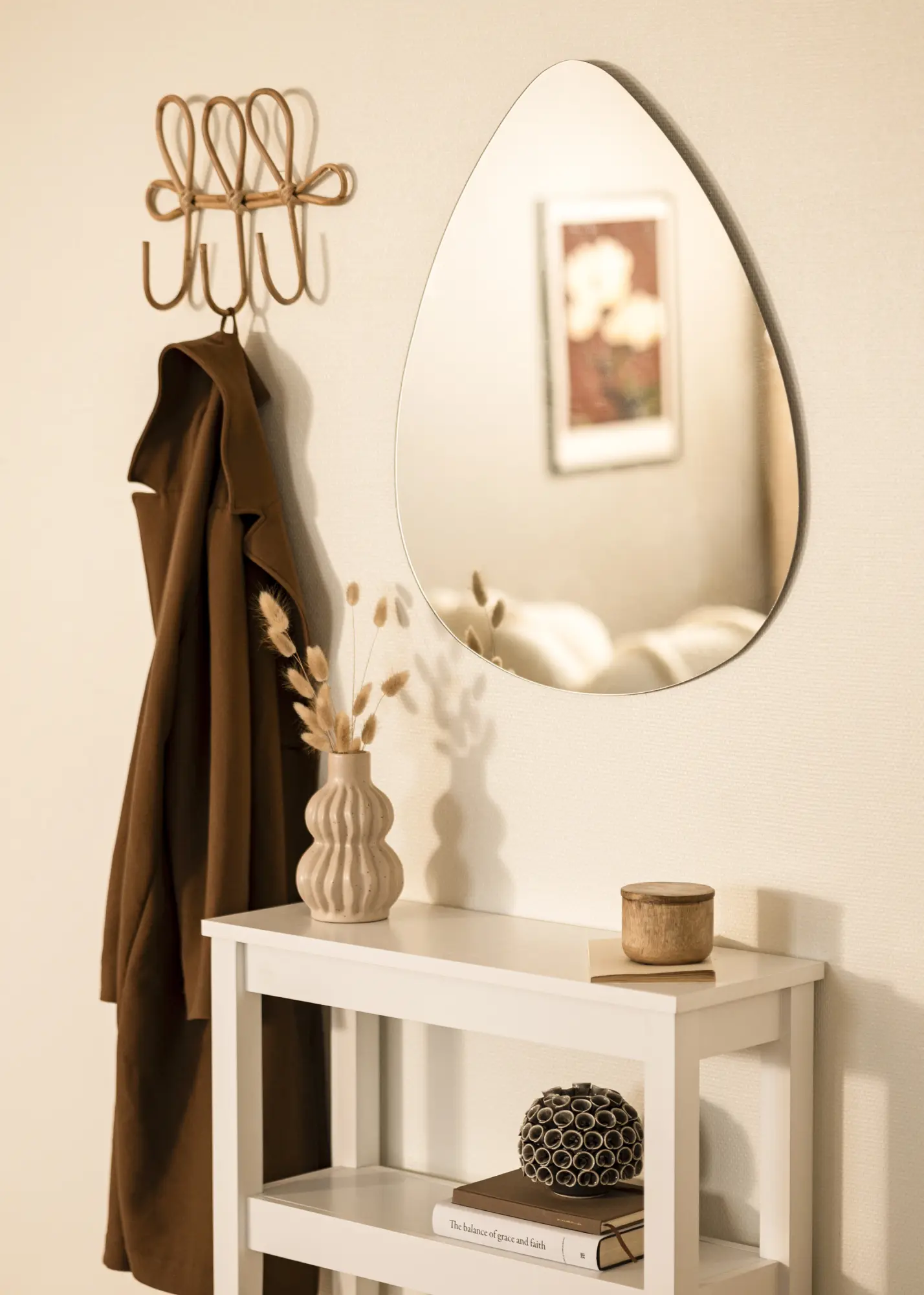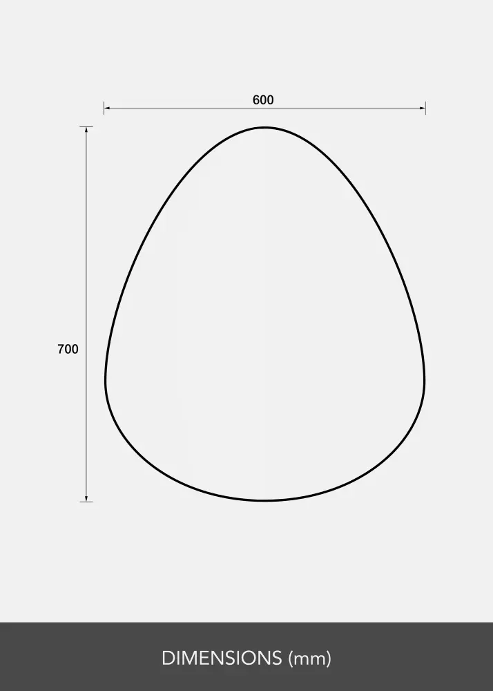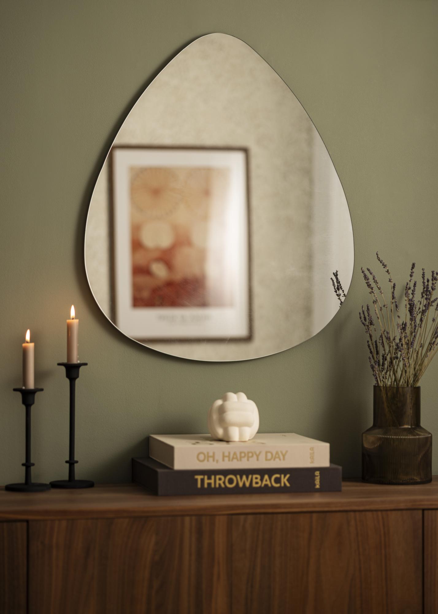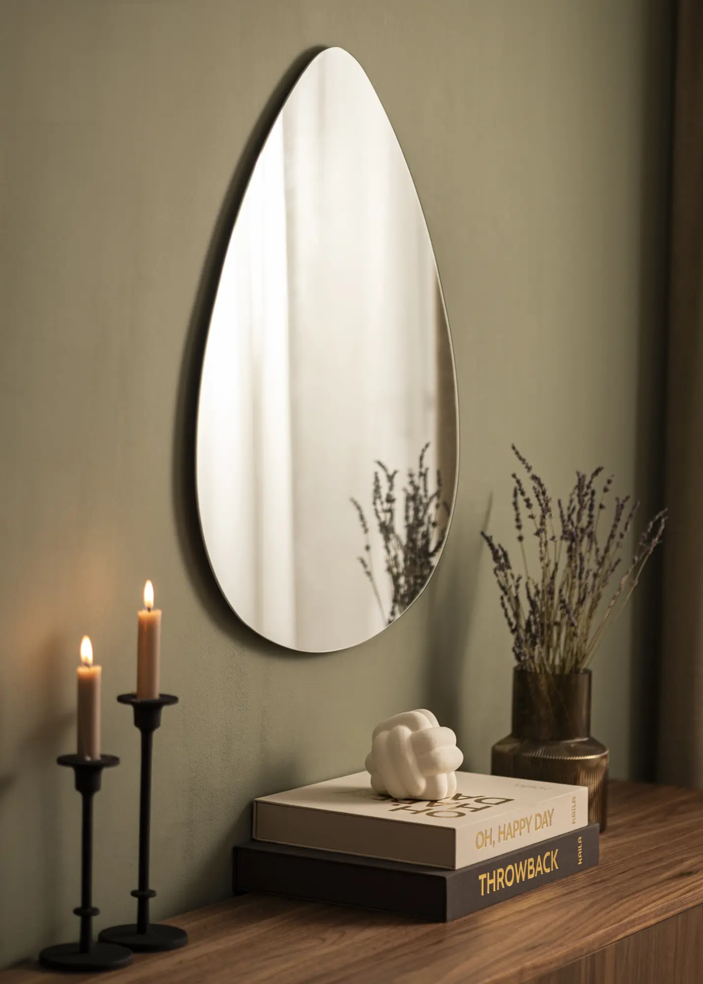 Dizajn zrcala je istovremeno moderan i bezvremenski, sa širokim, suženim i zaobljenim vrhom koji stvara prepoznatljivu siluetu u obliku kapljice. Ovaj oblik donosi mekoću i organski osjećaj u prostor, čineći zrcalo prikladnim za razne stilove uređenja interijera.