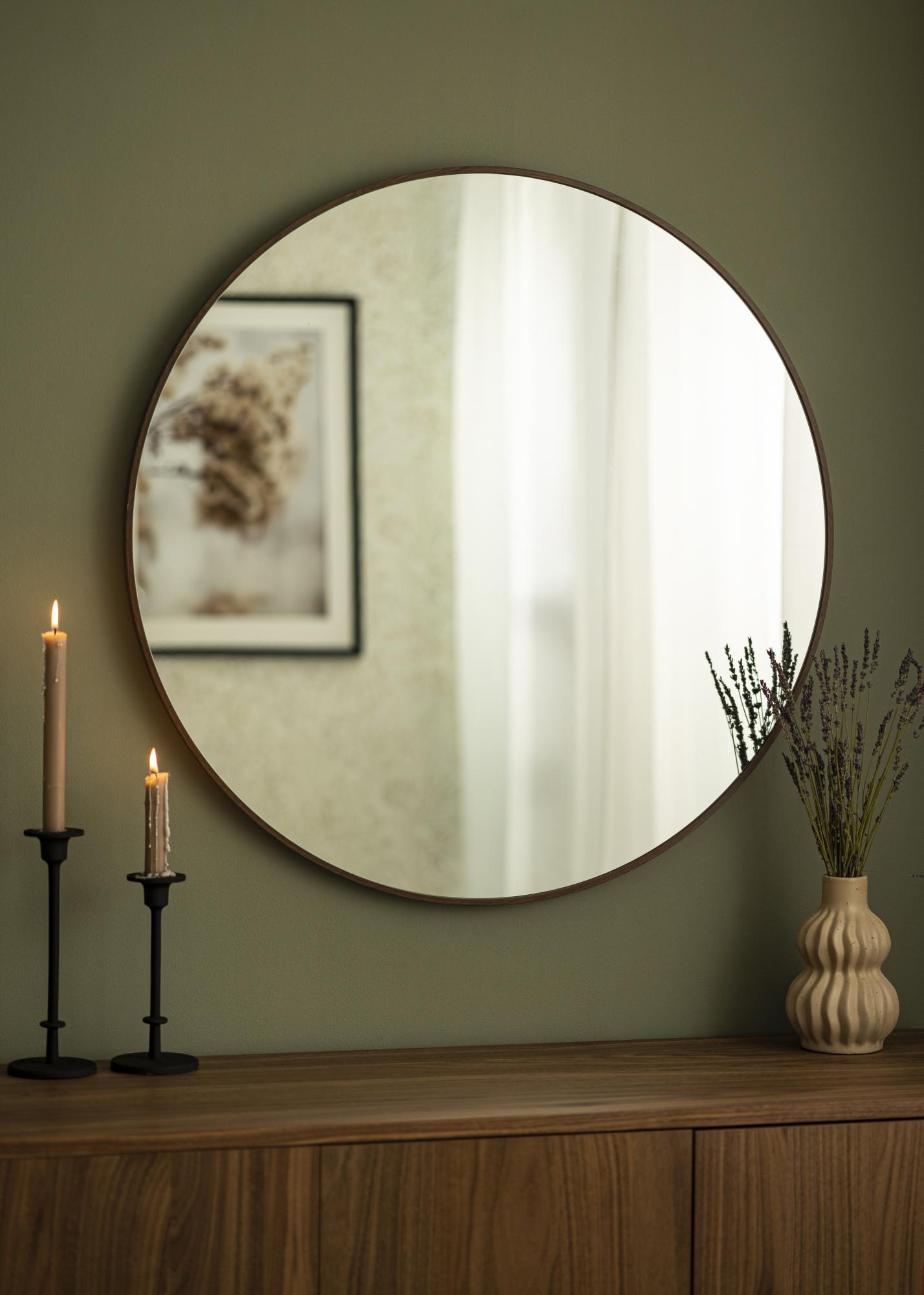 Otkrijte elegantnu jednostavnost s našim zidnim ogledalom, savršenim za dodavanje osjećaja prostora i svjetlosti u vašem domu. S impresivnim promjerom od 80 cm, ovo ogledalo postaje trenutni privlačitelj pogleda u bilo kojoj prostoriji. Njegov okrugli oblik daje mekan i pozivajući osjećaj, dok okvir boje oraha u aluminiju pruža dodir sofisticiranosti.