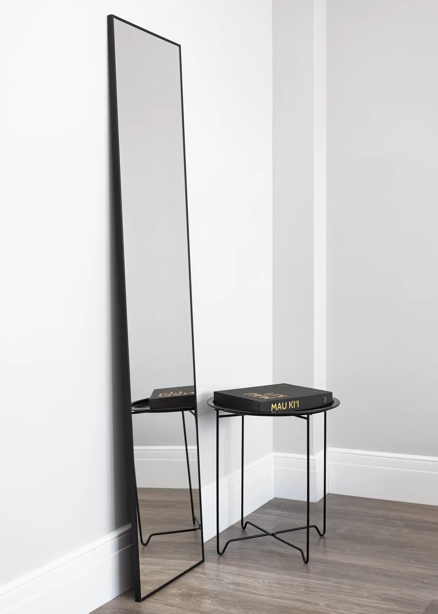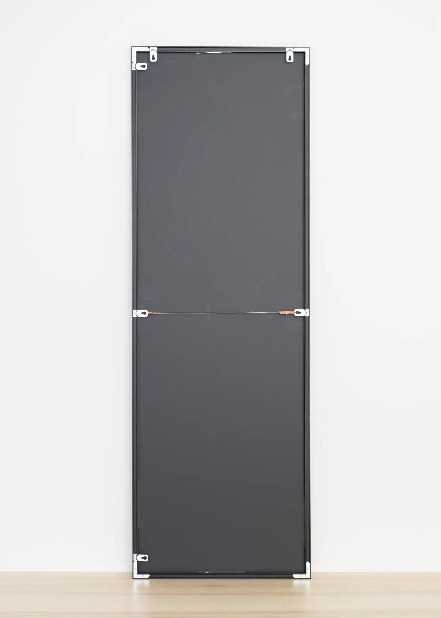 Zrcalo pune dužine sa crnim aluminijskim okvirom i reflektirajućom površinom od 40 x 170 cm, koje se unatoč svojoj veličini lako postavlja na zid zahvaljujući pametnim zidnim nosačima.