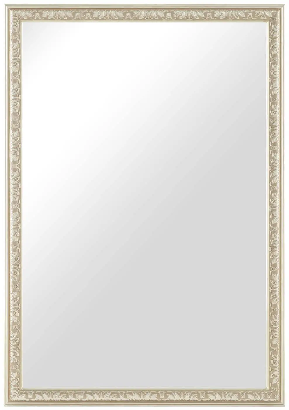 Neka ovaj bezvremenski ogledalo krasi zidove vašeg doma. Srebrni okvir ima jedinstveni profil i ukrašen je prekrasnim ornamentima. Klasičan izgled čini ga izvrsnim dodatkom u gotovo svakoj sobi i dobro odgovara samostalno ili kao zanimljiv element na zidu s umjetninama!