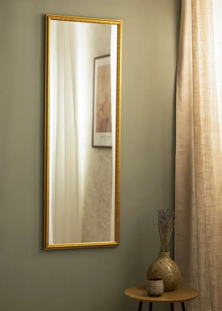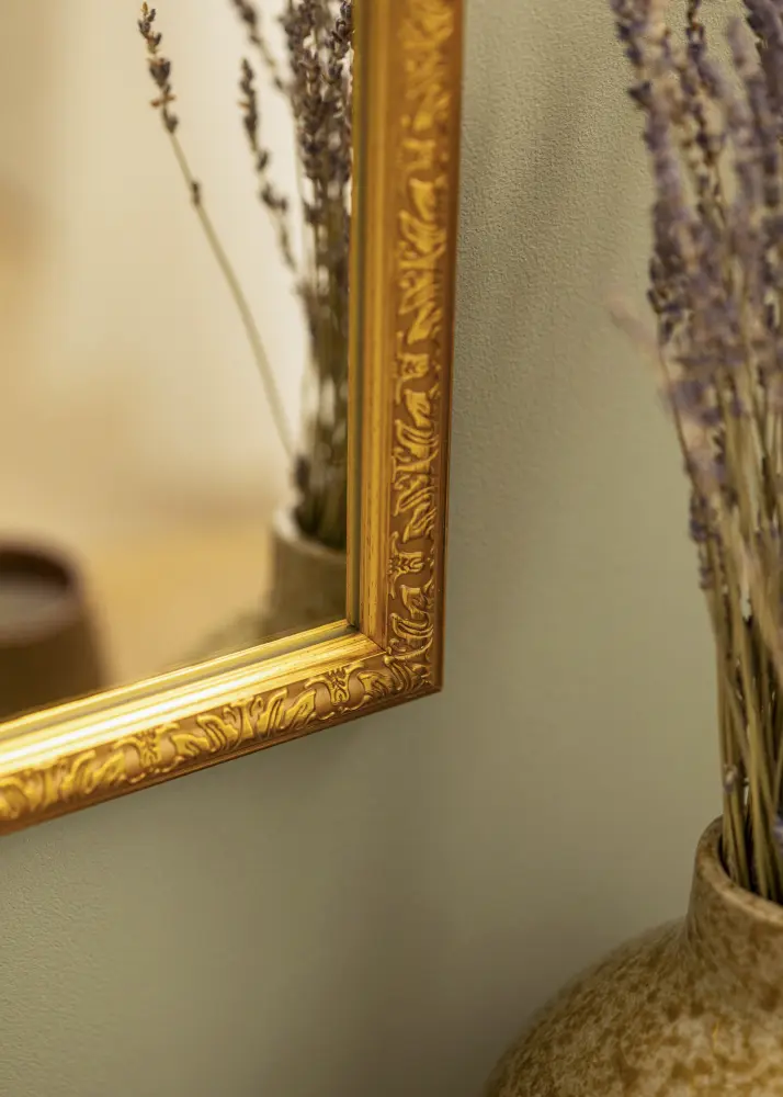 Jeste li u potrazi za luksuznim zrcalom u zlatnoj boji, možete prestati tražiti sada. Nostalgia Gold je zidno zrcalo s okvirom širine 2,8 cm s elegantnim profilom i prekrasnim dekorativnim uzorkom. Staklo zrcala će reflektirati svjetlost u vašoj prostoriji, dok samo zrcalo postaje stilski detalj na vašem zidu. Na stražnjoj strani nalazi se držač za zid za lakše vješanje.