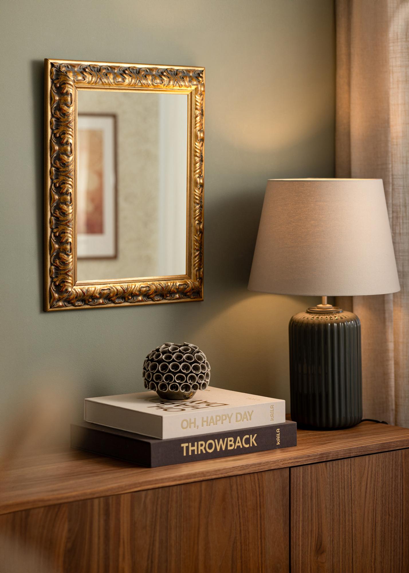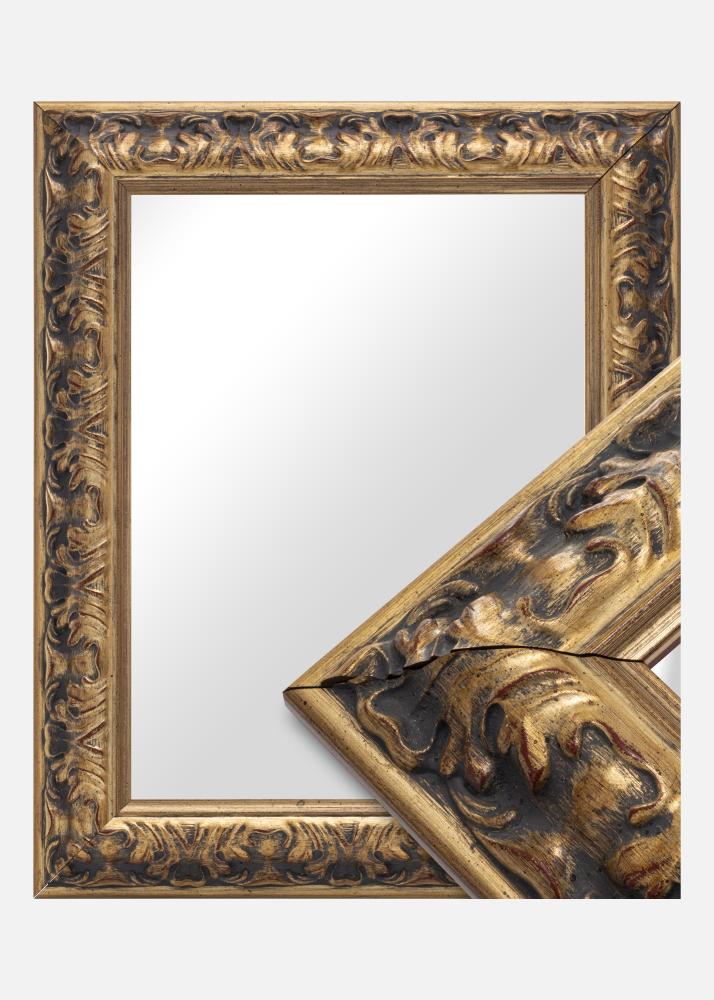 Zrcalo Odin Zlato/Crveno je elegantno i stilsko zrcalo koje se izrađuje prema vašim vlastitim mjerama. Sa svojim ukrašenim zlatnim okvirom i antiknom patinom, postaje upečatljiv detalj u bilo kojoj prostoriji. Okvir, širine 64 mm i dubine 38,5 mm, izrađen je od borovine i ukrašen baroknim detaljima. Izrezbareni uzorci u reljefu daju zrcalu jedinstven karakter i naglašeni su suptilnim kontrastom između zlata i tamnih akcenata.