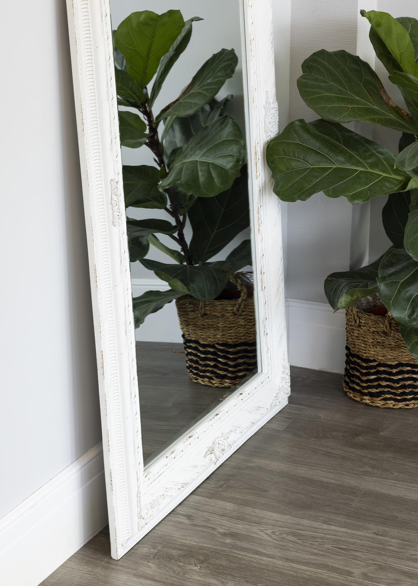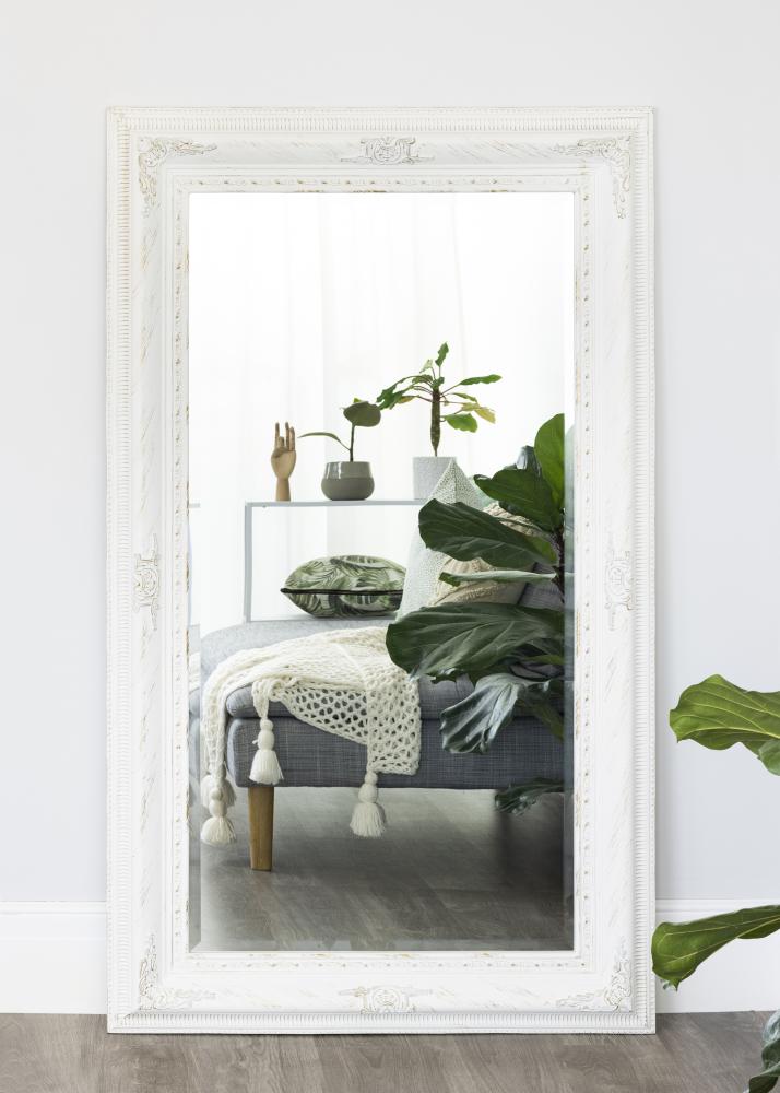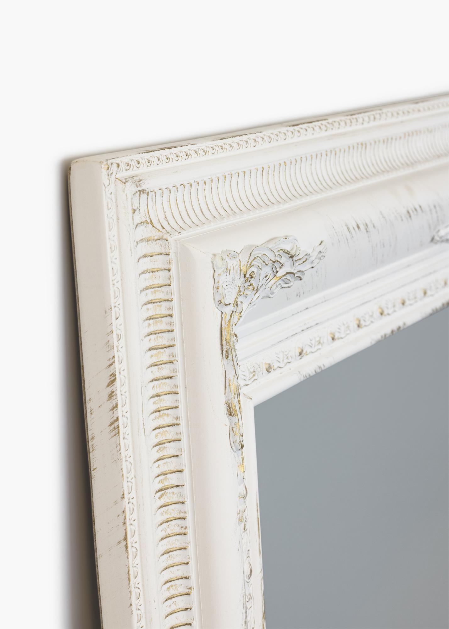 Zrcalo u bijeloj boji s romantičnim osjećajem, savršeno za one koji žele stvoriti interijer koji odiše ružama, glamourom i prošlim vremenima. Zrcalo je lijepo za objesiti u kupaonici iznad veće komode, kao i u ostatku doma, a veličina ga čini pogodnim za postavljanje na zid iznad velike komode ili sofe. Zrcalo se također može koristiti kao dio zida sa slikama s okvirima u bijeloj boji sličnog stila i pomaže osvijetliti tamnu sobu ako je obješeno nasuprot prozora.