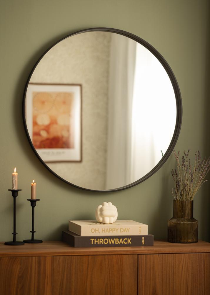 Otkrijte elegantnu jednostavnost našeg okruglog ogledala, bezvremenski dodatak interijeru koji savršeno pristaje u svaki dom. Ovo stilizirano, okruglo ogledalo ističe se svojom crnom ramom, koja donosi svjež i moderan osjećaj u prostoriju. Njegov minimalistički dizajn omogućuje mu uklapanje u različite stilove interijera, od skandinavskog do industrijskog.
