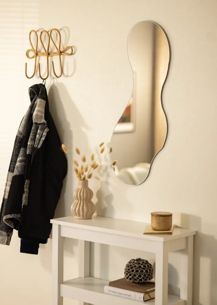 Otkrijte ogledalo koje krÅ¡i tradiciju i unosi kreativni dodir u vaÅ¡ dom. Ovo jedinstveno ogledalo ima oblik nalik na val ili oblak, Å¡to stvara mek i razigran efekt u prostoru. Njegov neobiÄan dizajn Äini ga poÄetkom razgovora i umjetniÄkim djelom samim sobom.