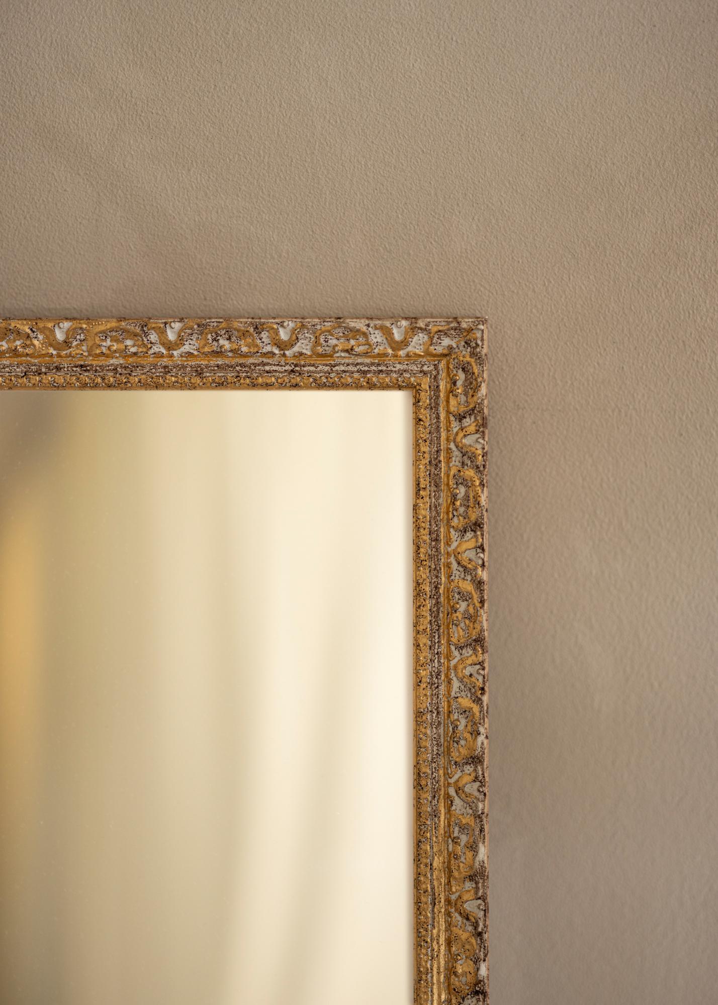 Elegantni retroinspirirani okvir ogledala visoke kvalitete s ekskluzivnim dizajnom u srebru i zlatu proizveden u Italiji.