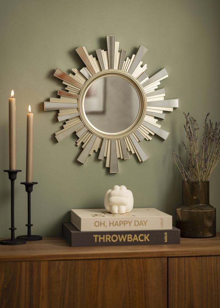 Postavite ogledalo na mjesto gdje će biti vidljivo i doći do izražaja kao dekorativni element – u dnevnom boravku, u blagovaonici ili možda u hodniku. Sunčano ogledalo može stajati samostalno na zidu ili u kombinaciji s drugim lijepim zidnim dekoracijama.