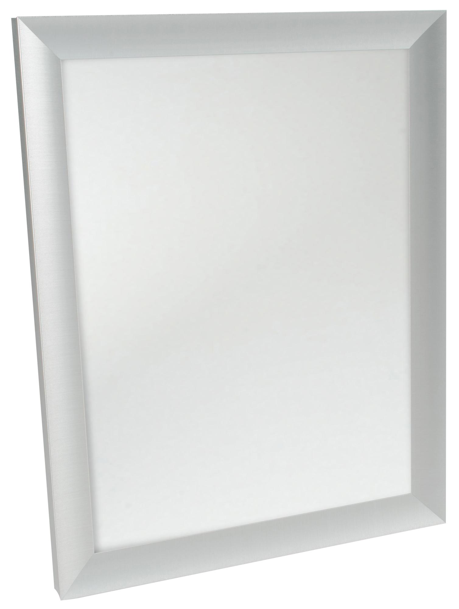 Zrcalo s elegantnim okvirom od aluminija u polumat srebrnoj nijansi, proizvedeno u Njemačkoj. Elegantni izraz i diskretna srebrna boja zrcala čine ga prikladnim za sve vrste stilova uređenja interijera i okoline, no posebno dobro izgleda uz meke boje ili u prostoru s nijansama isključivo sive skale. Kombinirajte zrcalo s slikama s okvirima u srebrnoj, crnoj ili bijeloj boji ili ga objesite iznad elegantnog sideboarda kao atrakciju.