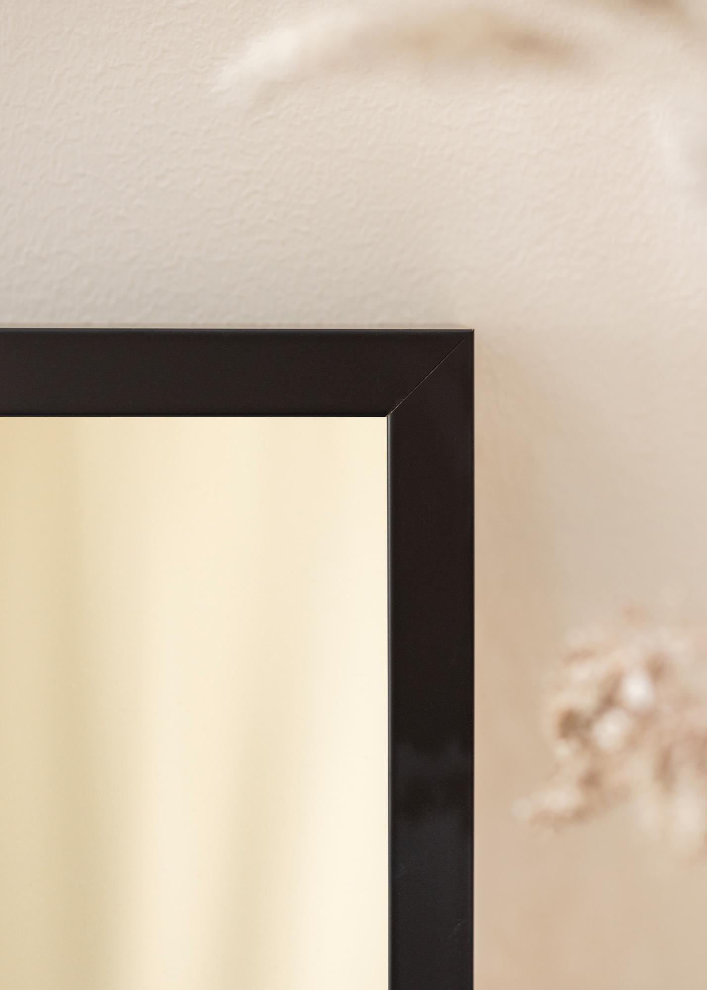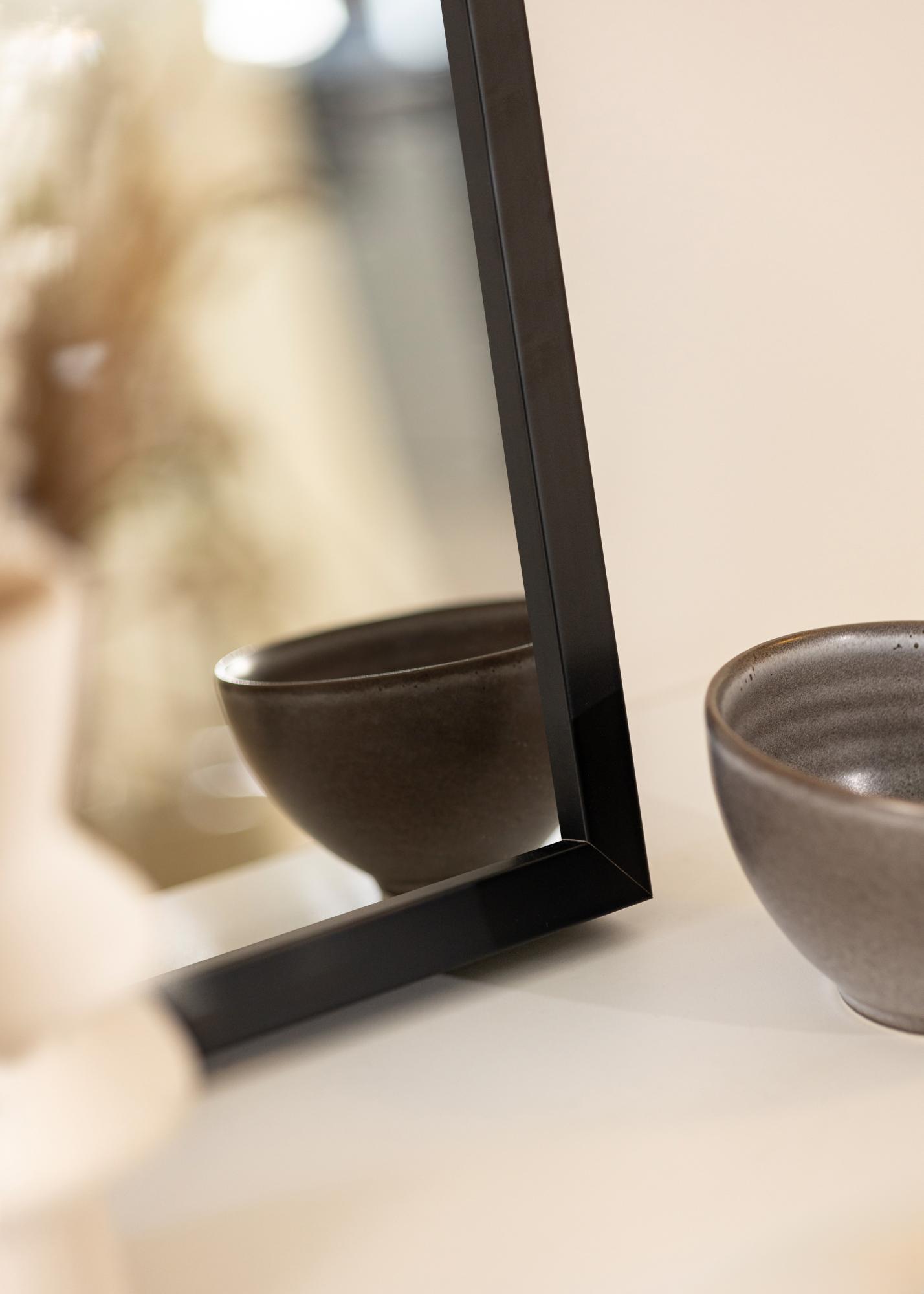 Okvir ogledala Thor Crna je širok 20 mm i pruža ogledalu diskretan, ali ipak jasan okvir. Crna boja okvira stvara lijep kontrast s ogledalom i pridonosi sofisticiranom izgledu. S dubinom od 40 mm, ogledalo ima robustan osjećaj bez da bude glomazno, što ga čini lakim za postavljanje čak i u manjim sobama ili uskim prostorima.