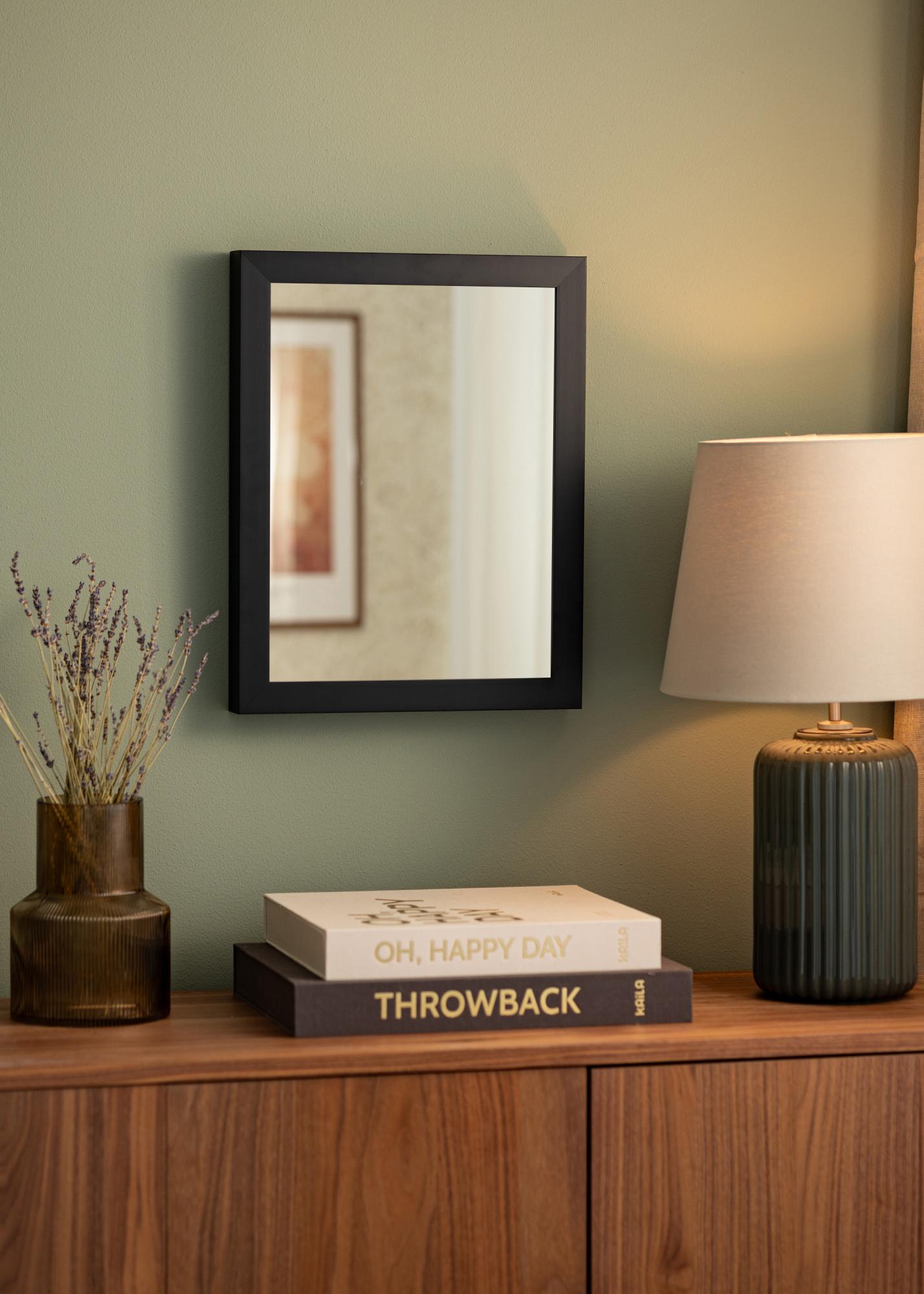 Ovo zrcalo ima elegantnu crnu boju koja daje sofisticiran i uredan dojam u kojoj god prostoriji da se nalazi. Okvir širine 30 mm ukusno uokviruje zrcalo i doprinosi njegovom modernom izgledu. S debljinom od 50 mm, zrcalo ima robusni osjećaj dok zadržava svoju eleganciju.