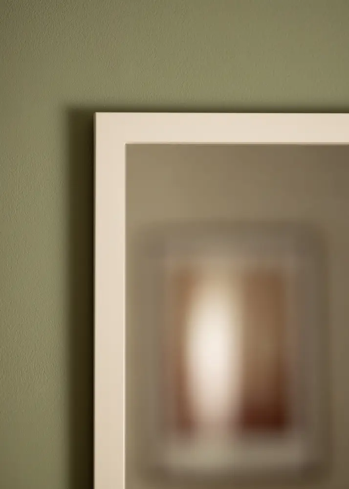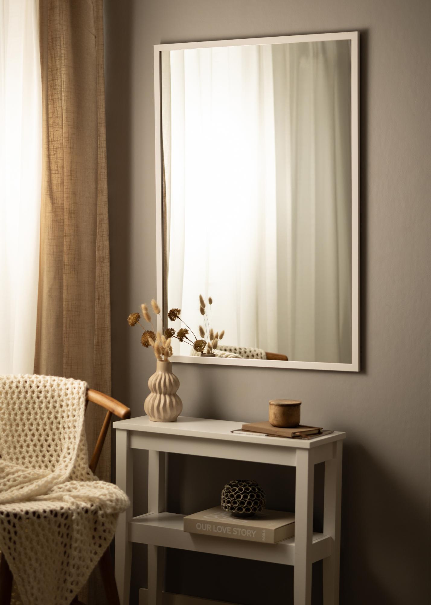Ogledalo je dio serije zidnih ogledala u različitim izvedbama, od kojih je ovo varijanta dimenzija 70x100 cm s bijelim okvirom.