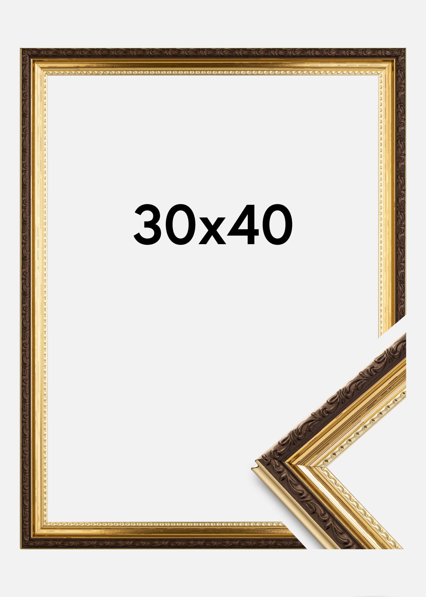 Tražite li lijepo ukrašen okvir u starijem stilu? Abisko Akrilno staklo Zlatna je čvrst zlatni okvir s nevjerojatno elegantnim ornamentima. Okvir širine 25 mm ima sjajnu zlatnu boju s ukrašenim smeđim rubom u sredini. Zlatni dio je također ukrašen, s valovitim uzorkom najbližim staklu.