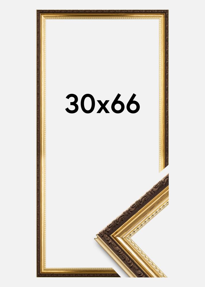 Tražite li lijepo ukrašen okvir u starinskom stilu? Abisko Akrilno staklo Zlato je čvrst zlatni okvir s nevjerojatno stiliziranim ornamentima. Okvir ima 25 mm širok profil s sjajnom zlatnom bojom i ukrašenom smeđom ivicom u sredini. Također je i zlatni dio ukrašen, s valovitim uzorkom neposredno uz staklo.