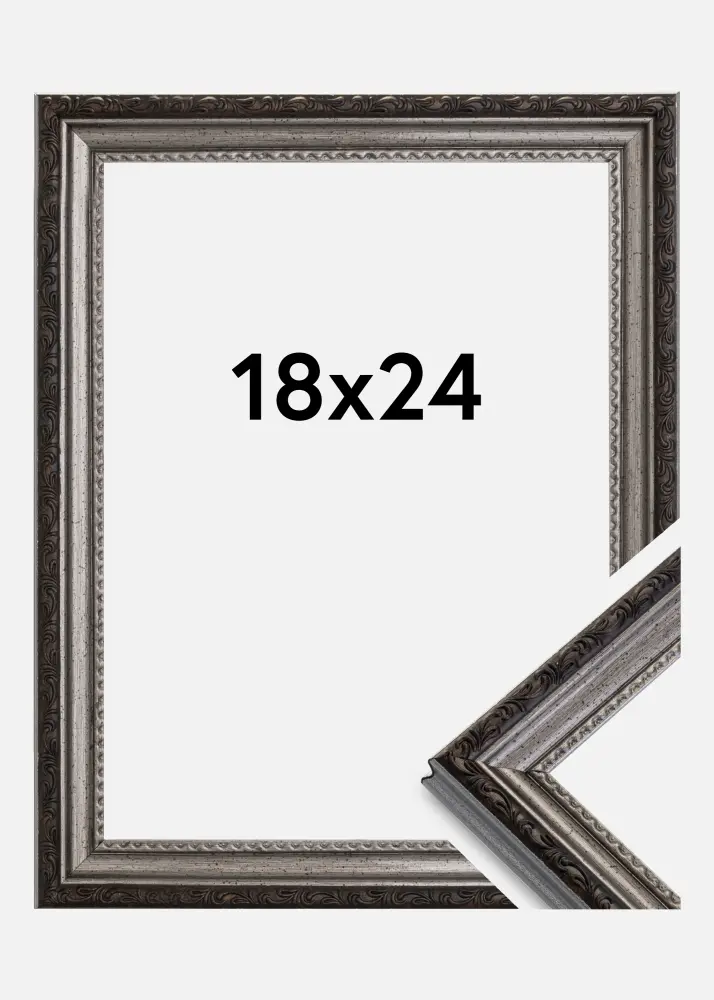 Pokreni birač okvira »Abisko je moderan srebrni okvir u retro stilu s lijepim ukrasima. Odličan izbor kada tražite klasični srebrni okvir.
