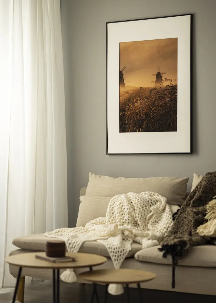 Instalacija je jednostavna zahvaljujući rotirajućim metalnim kopčama koje drže motiv na mjestu, a unaprijed montirani metalni vješalice na stražnjoj strani omogućuju vam da objesite okvir horizontalno i vertikalno. Bez obzira odlučite li ga postaviti u dnevnoj sobi, spavaćoj sobi ili uredu, ovaj okvir za slike u dimenzijama 70 x 100 cm dodaće moderan dodir vašem interijeru. Dodatno, okvir je dostupan u više veličina kako bi odgovarao vašim potrebama.