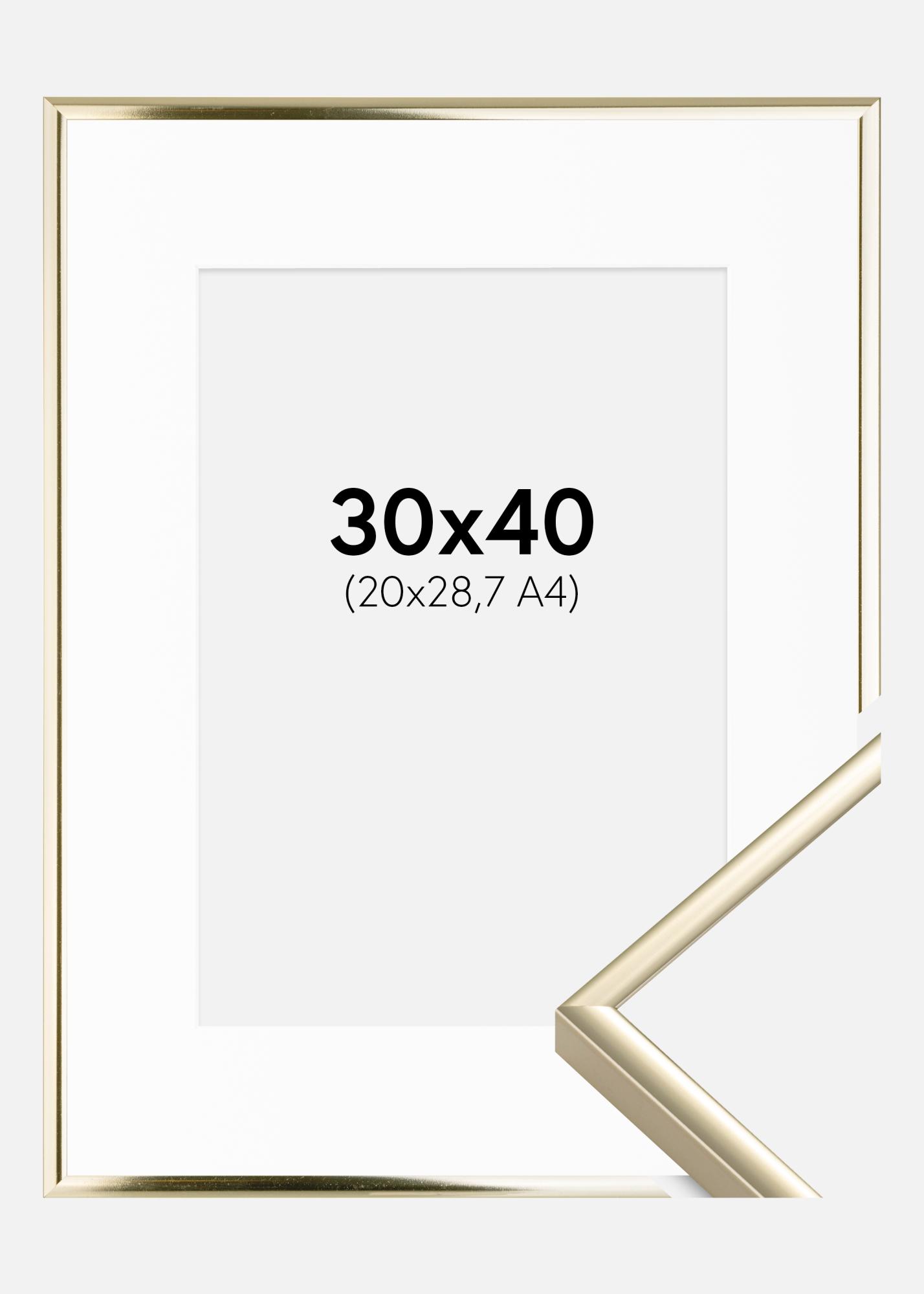 Okvir Aluminij Sjajna Zlatna 30x40 cm - Paspartu Bijelo 21x29,7 cm (A4)