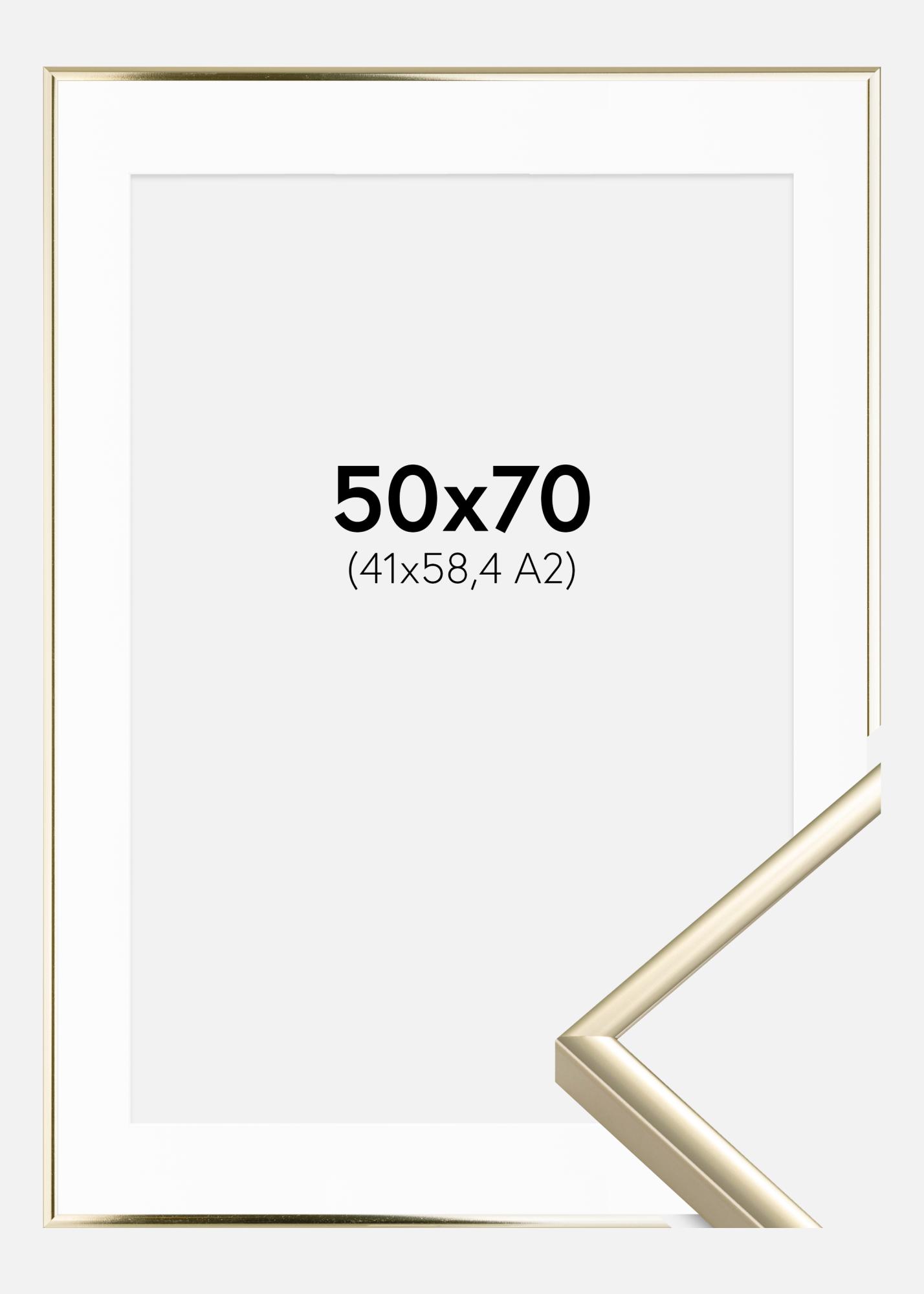 Okvir Aluminij Sjajna Zlatna 50x70 cm - Paspartu Bijelo 42x59,4 cm (A2)