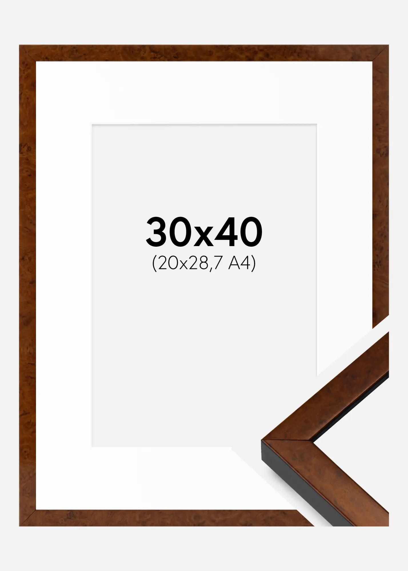 Okvir Ares orah 30x40 cm - Paspartui Bijela 21x29,7 cm