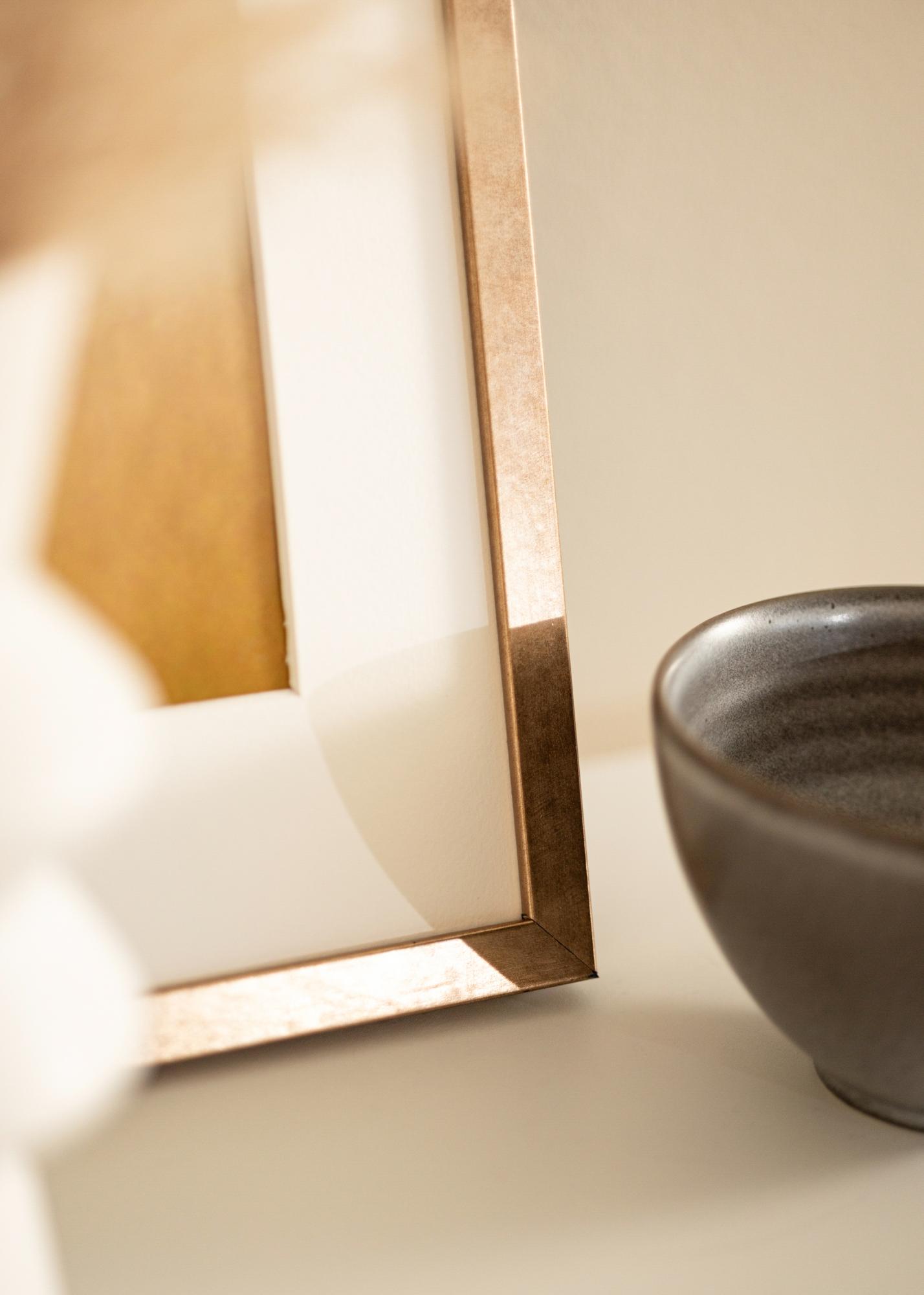 Elegantni okvir u boji mjedi s passepartoutom je savršen izbor za isticanje vaših omiljenih fotografija. Okvir veličine 42x52 cm s passepartoutom koji odgovara slikama u A3 formatu (29,7x42 cm) omogućava elegantno uokviravanje koje vašim slikama daje profesionalan dojam.