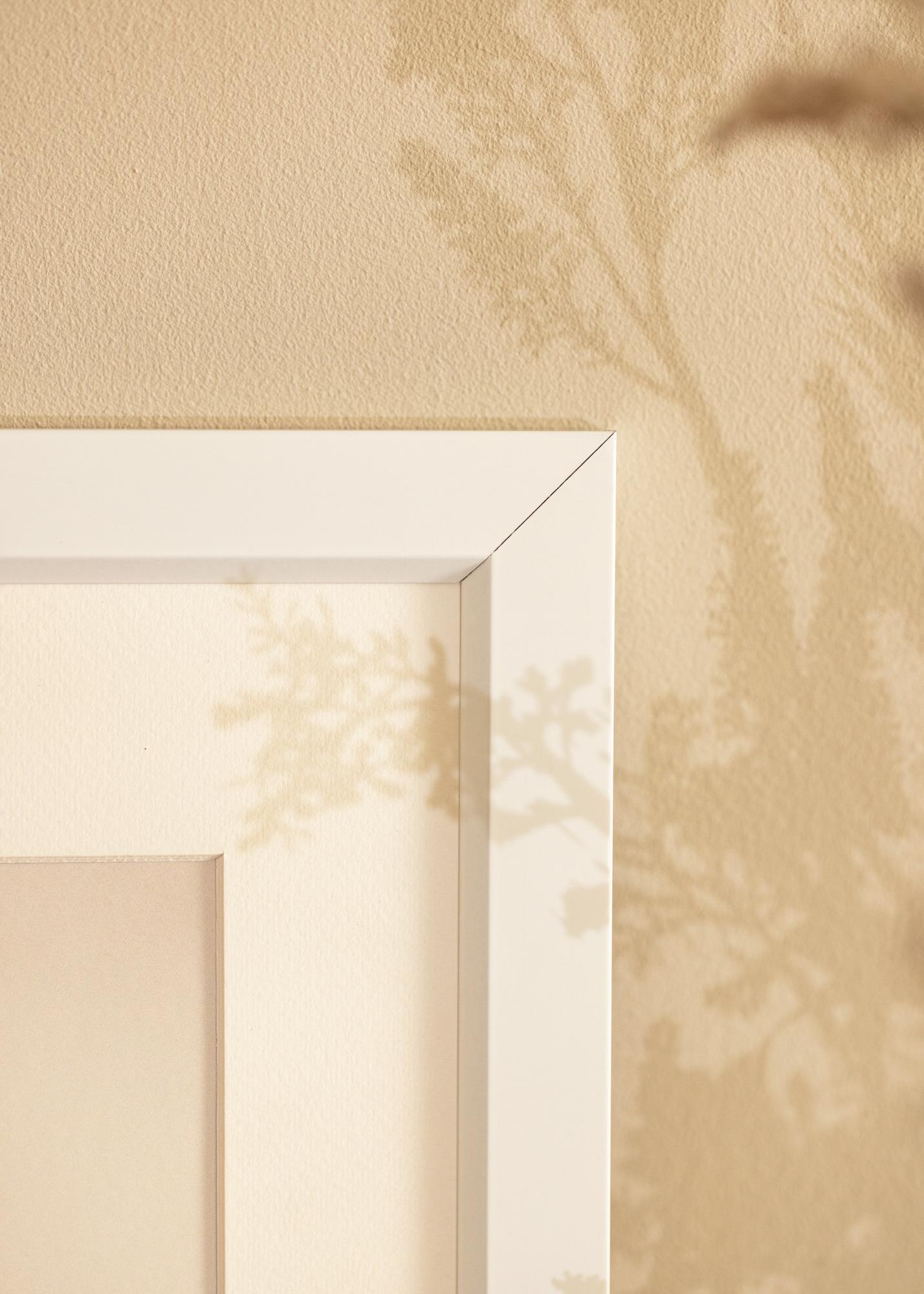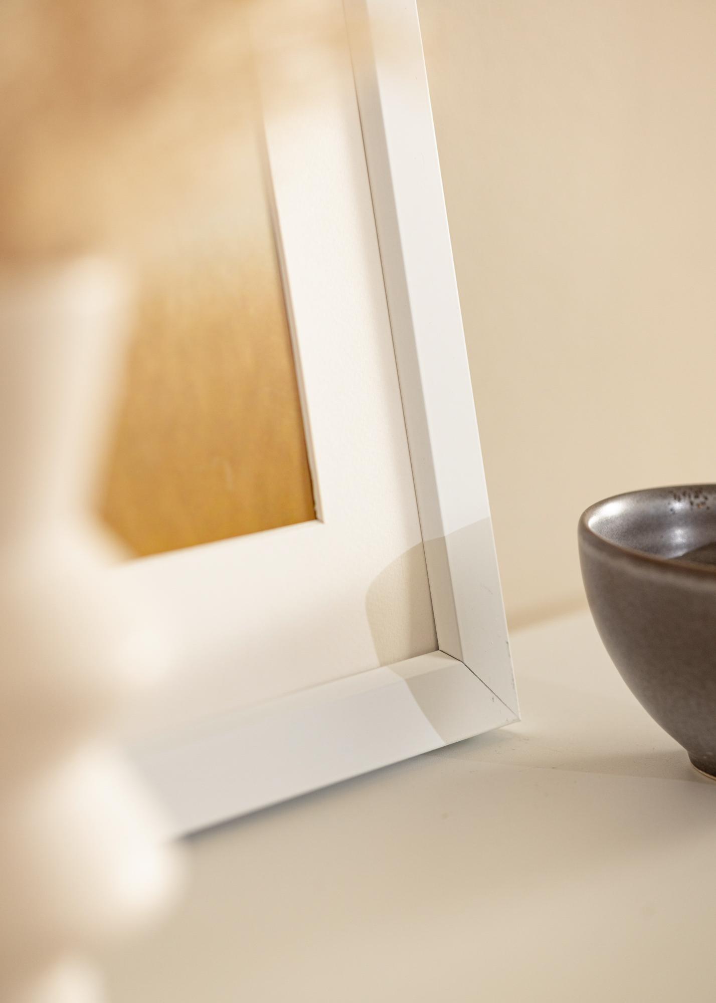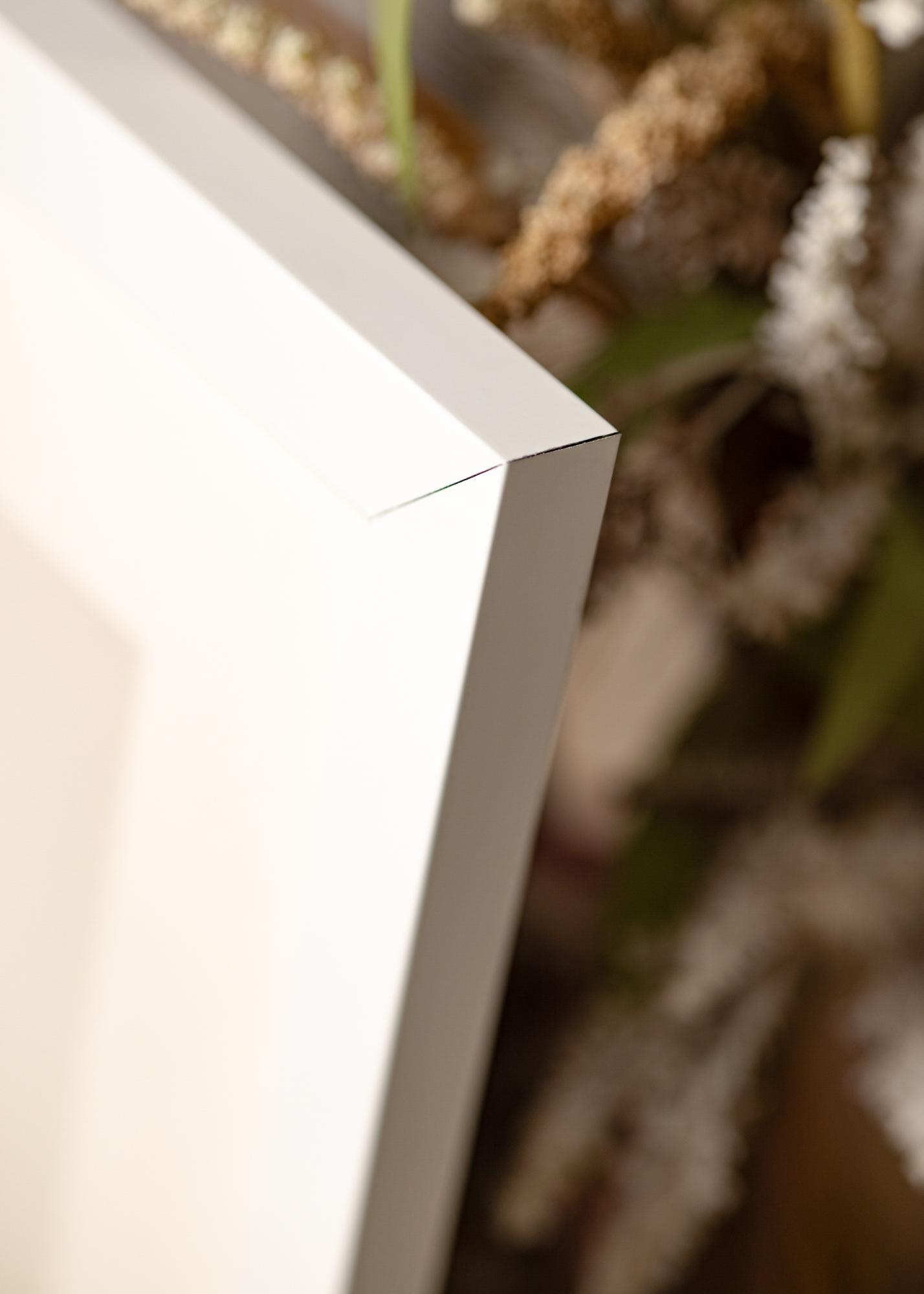 Elegantan bijela aluminijska okvira s ukošenim unutarnjim rubom koji daje elegantan izgled slici i dobro se uklapa u sve vrste interijera. Bijeli okvir odgovara svim vrstama slika, dopuštajući da fokus bude potpuno na motivu i osiguravajući da bude istaknut. Najefektnije je uz šarene ili grafičke motive koji stvaraju kontrast s bijelom. Kombinirajte različite vrste bijelih okvira s motivima na jednu temu za zid sa slikama koji će privlačiti poglede u dnevnom boravku.