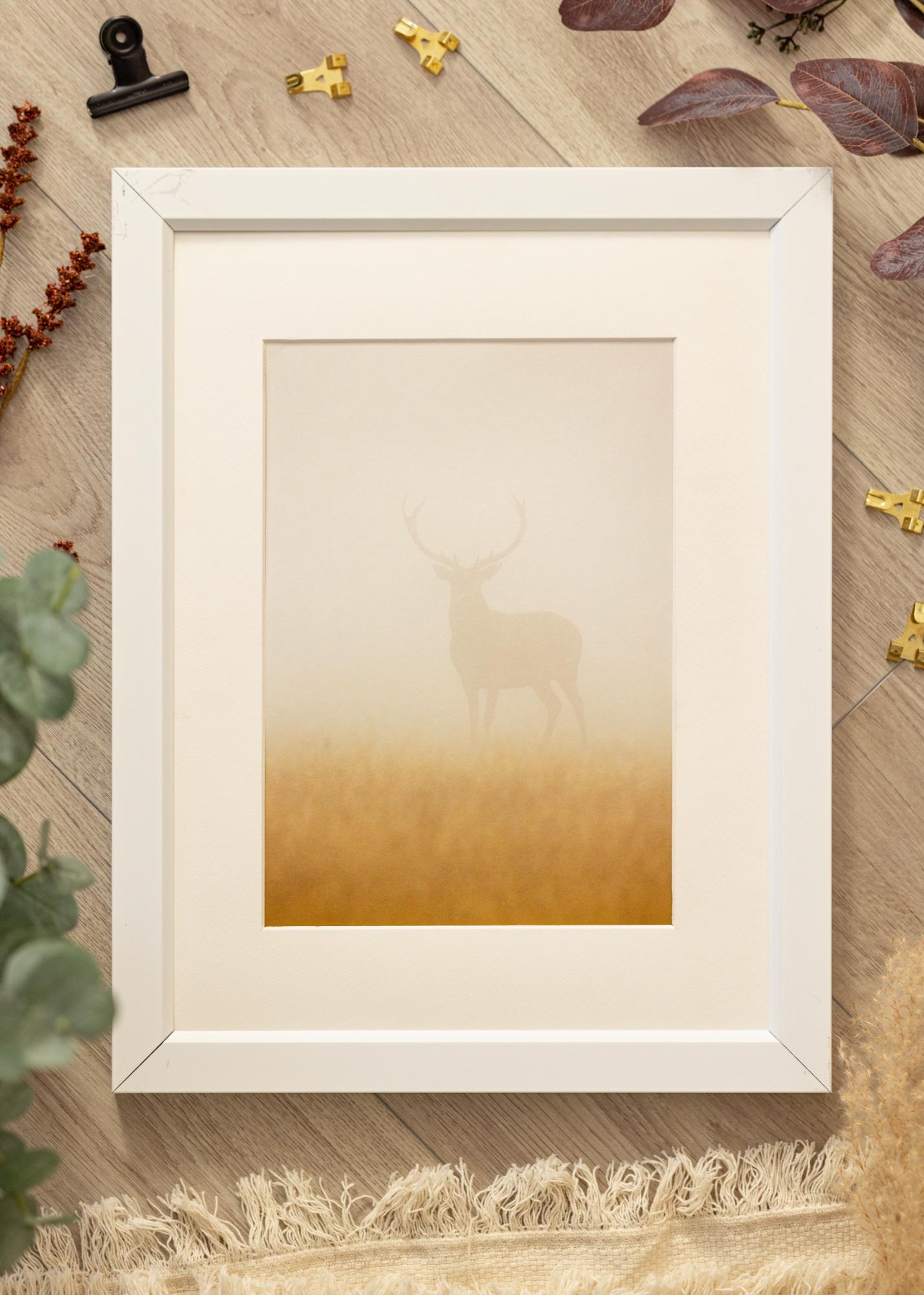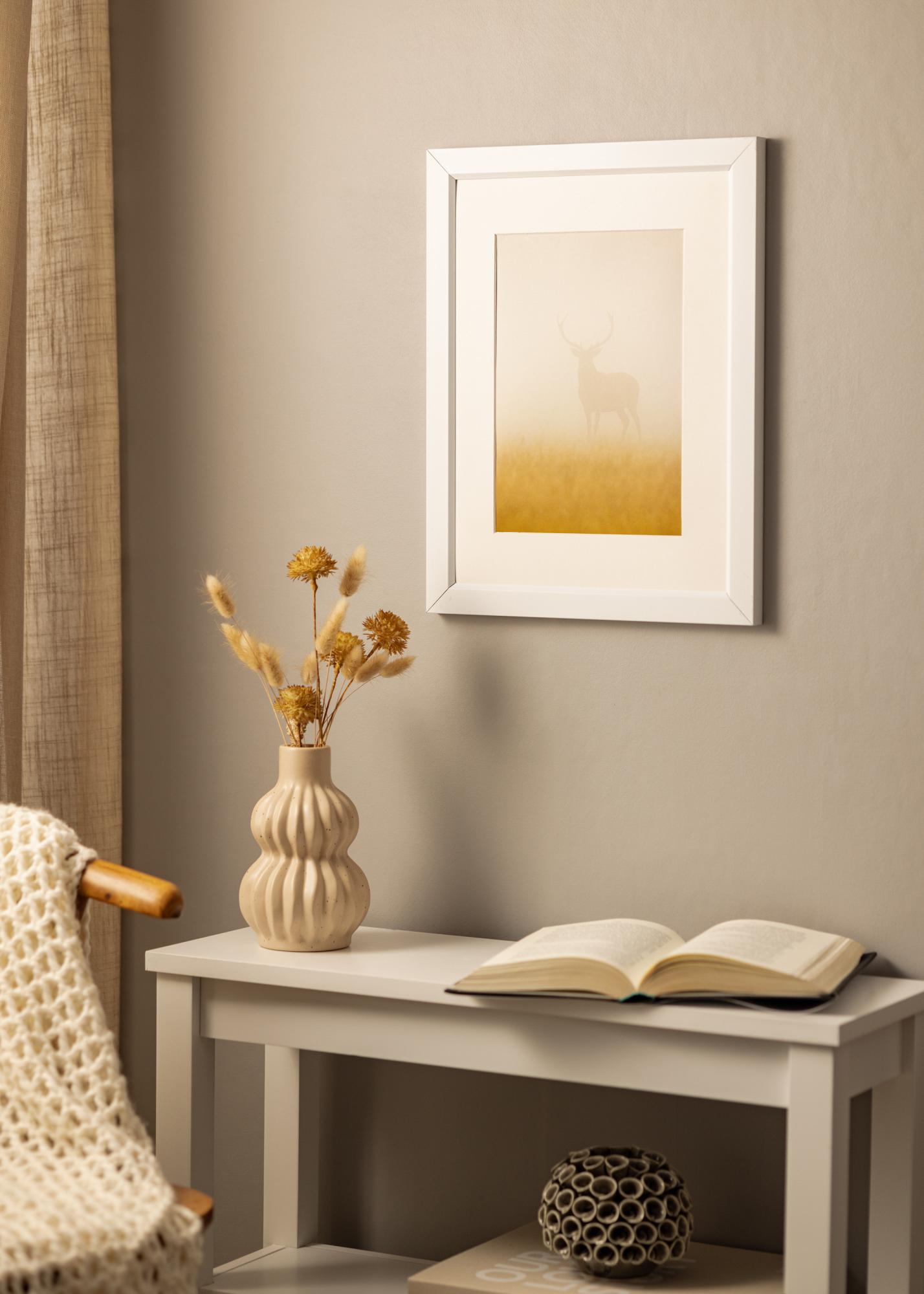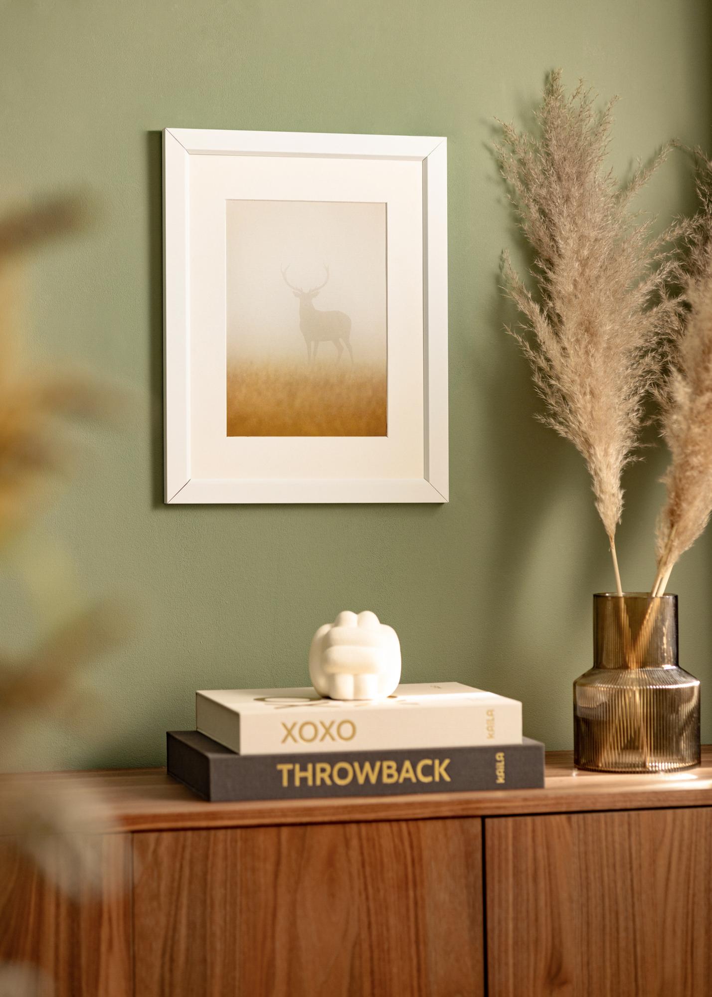 Elegantan bijela aluminijska okvira s ukošenim unutarnjim rubom koji daje elegantan izgled slici i dobro se uklapa u sve vrste interijera. Bijeli okvir odgovara svim vrstama slika, dopuštajući da fokus bude potpuno na motivu i osiguravajući da bude istaknut. Najefektnije je uz šarene ili grafičke motive koji stvaraju kontrast s bijelom. Kombinirajte različite vrste bijelih okvira s motivima na jednu temu za zid sa slikama koji će privlačiti poglede u dnevnom boravku.
