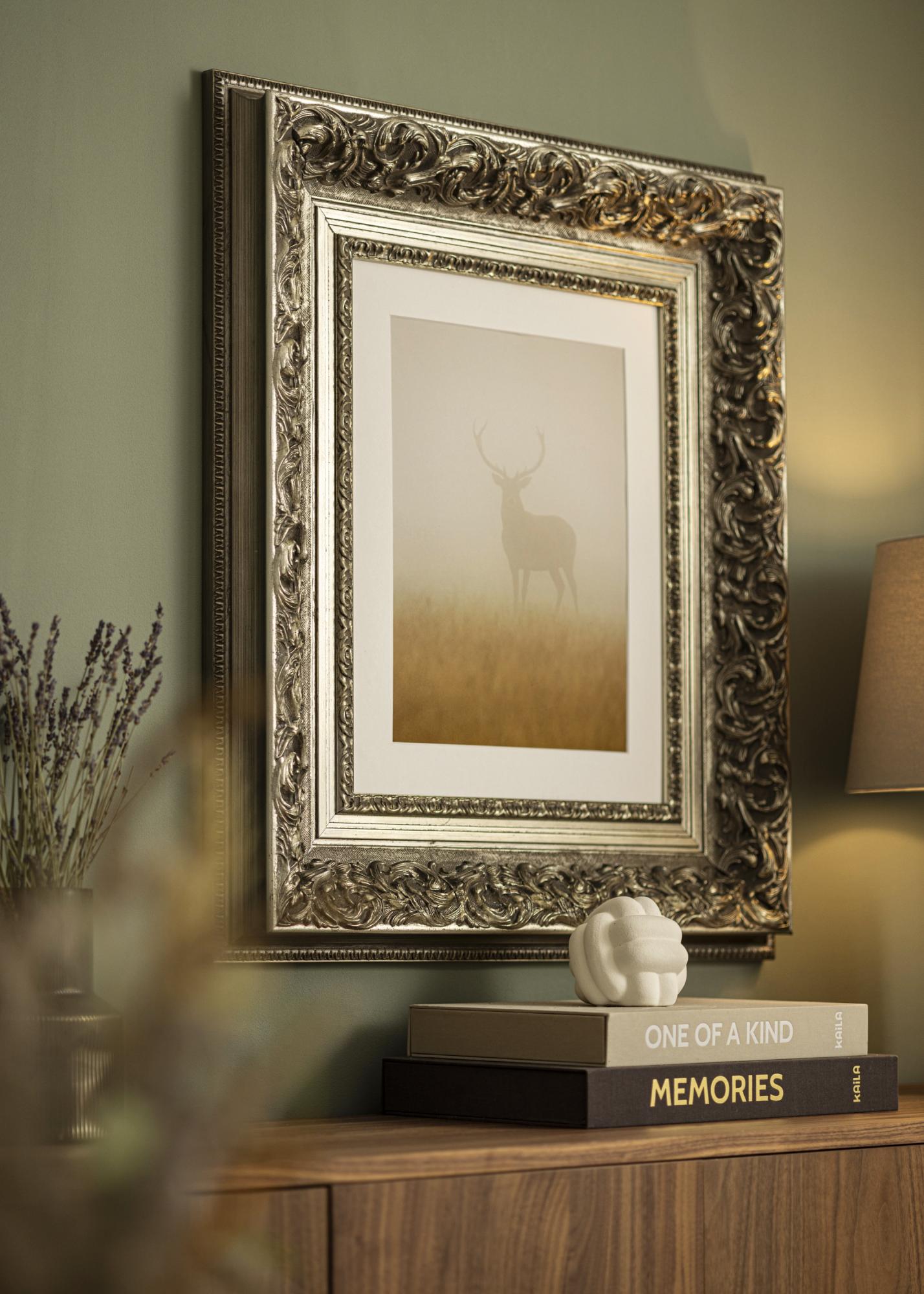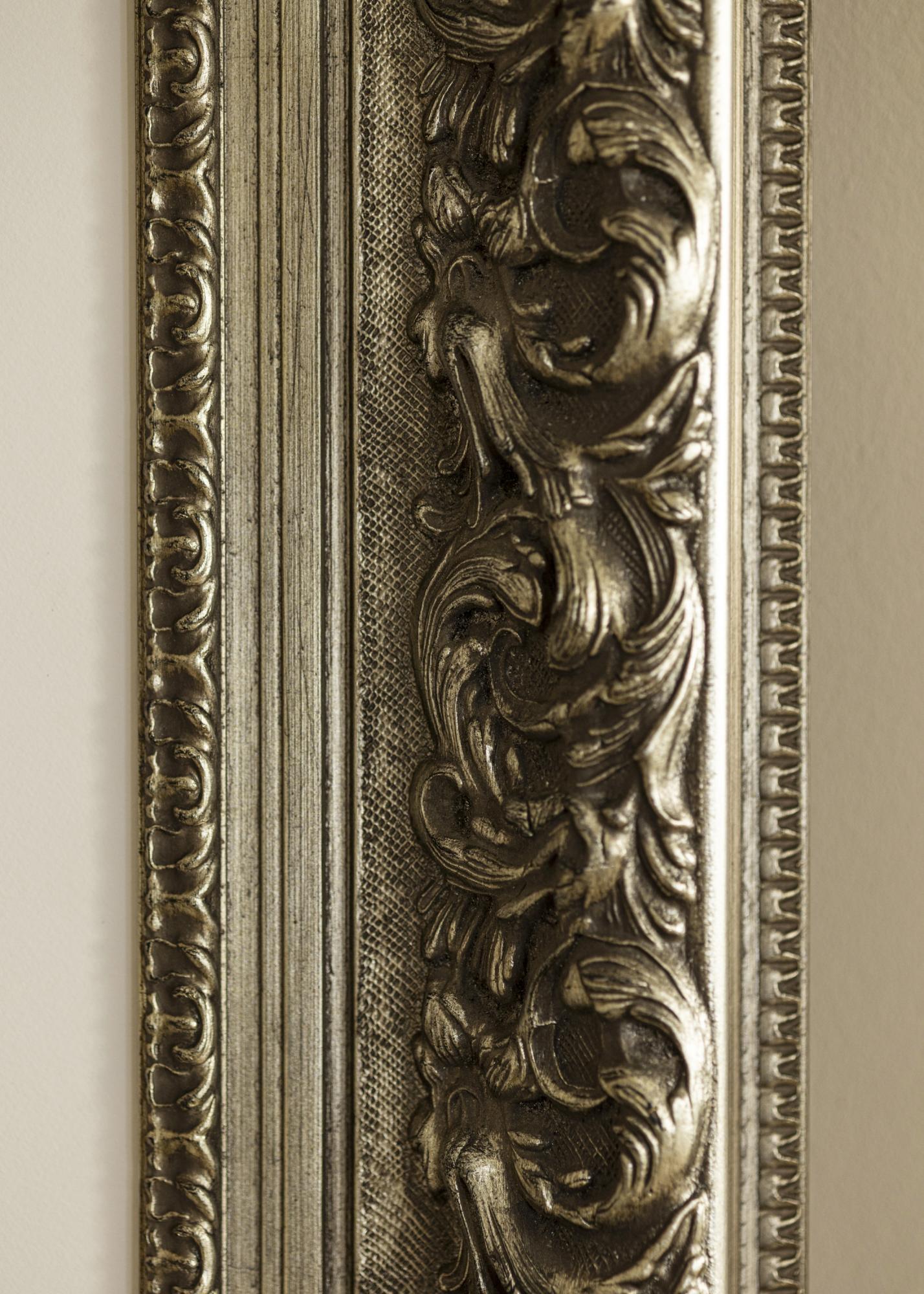 Ovaj bogato ukrašen okvir u antiknom srebru ima zamršene detalje i prekrasnu patinu koja pruža osjećaj elegancije i bezvremenosti. Duboki reljef ističe skulpturalne uzorke lišća, što ga čini savršenim izborom za klasične motive i uokvirivanja koji zahtijevaju upečatljiv i dekorativan okvir za slike.