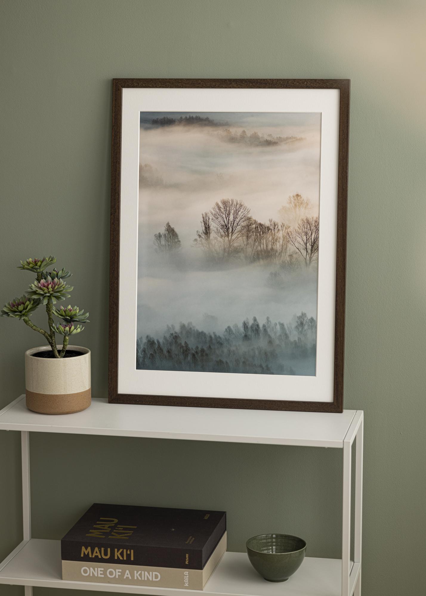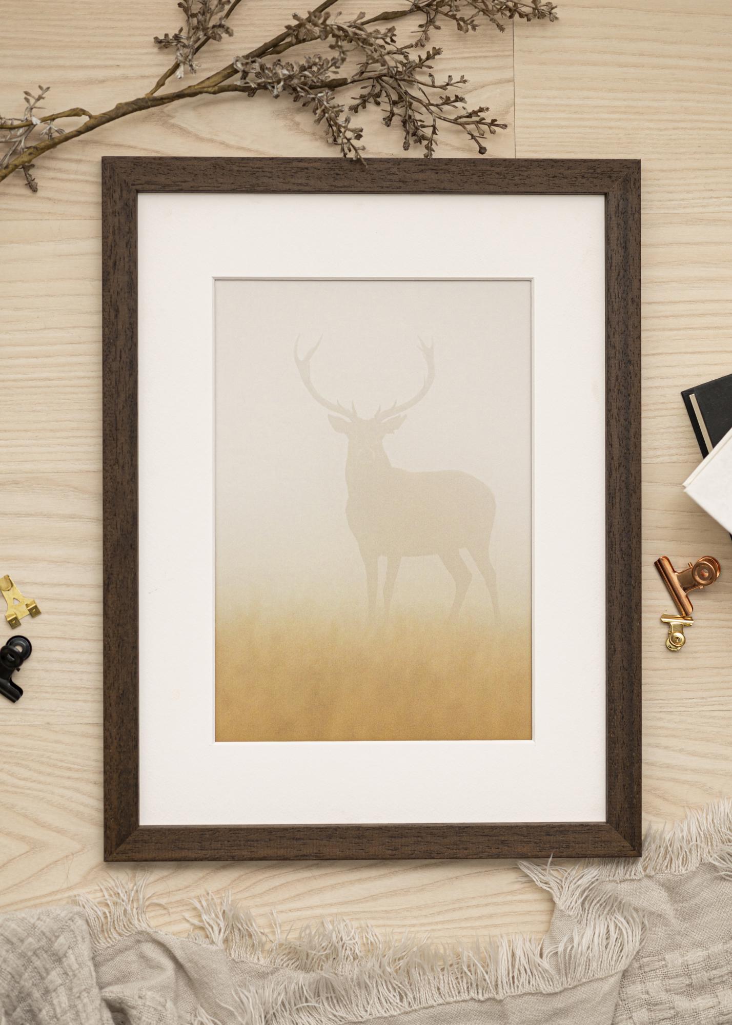 Okvir dolazi s bijelim passepartoutom koji uokvirava vašu sliku na ukusan način i stvara profesionalan izgled. Passepartout je prilagođen za slike veličine 55x65 cm, što daje prekrasan kontrast prema smeđem okviru i elegantno ističe motiv.