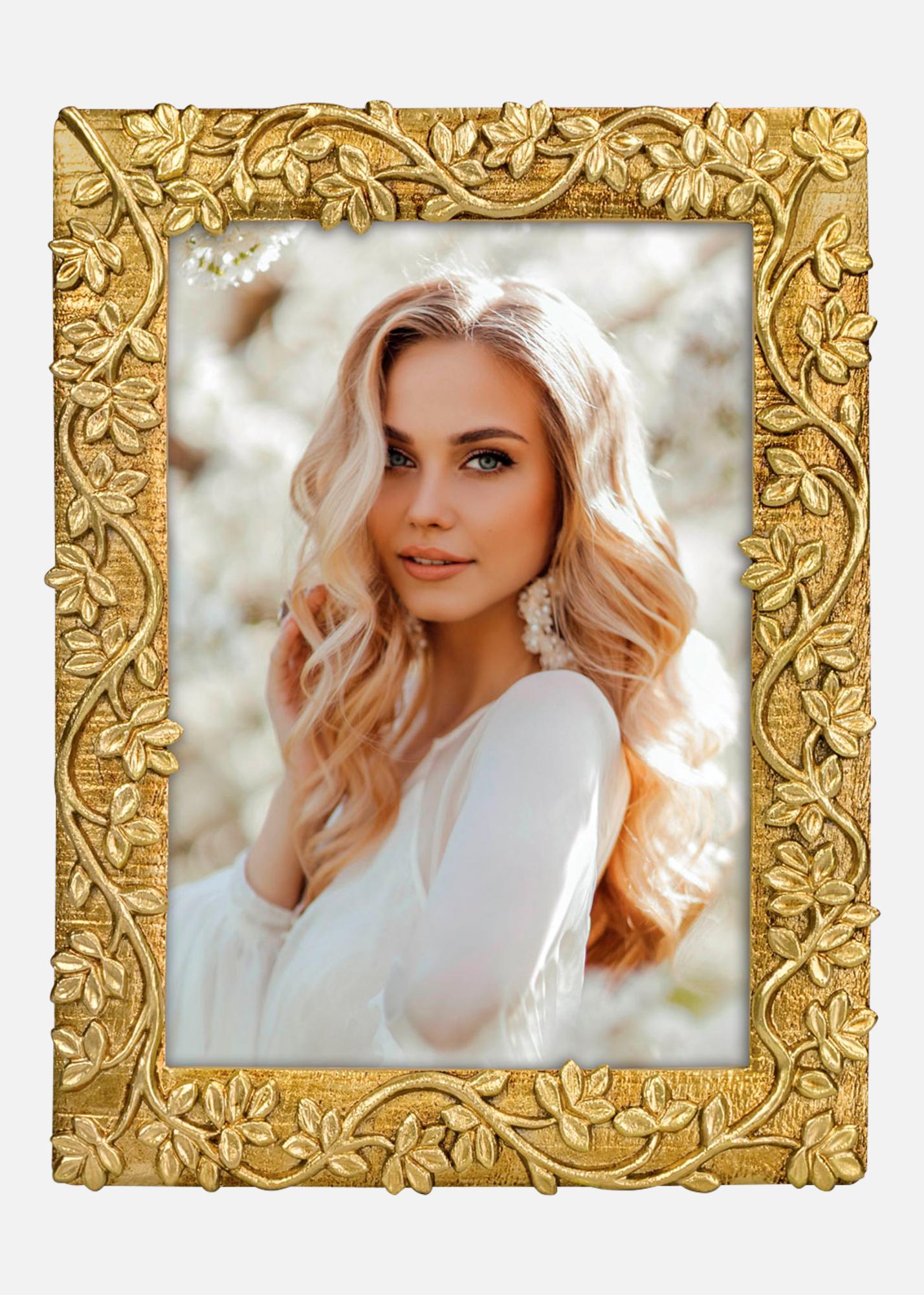 Dajte svojim uspomenama pažnju koju zaslužuju s ovom izvrsnom, zlatnom okviru za slike. Sa svojim ukrasnim cvjetnim dekoracijama, ovaj okvir za slike dimenzija 15x20 cm pravi je mamac za oÄi koji unosi luksuzan osjeÄaj u vaÅ¡ dom. Njegov jedinstveni dizajn Äini ga viÅ¡e od obiÄnog okvira; on je umjetniÄko djelo sam po sebi.