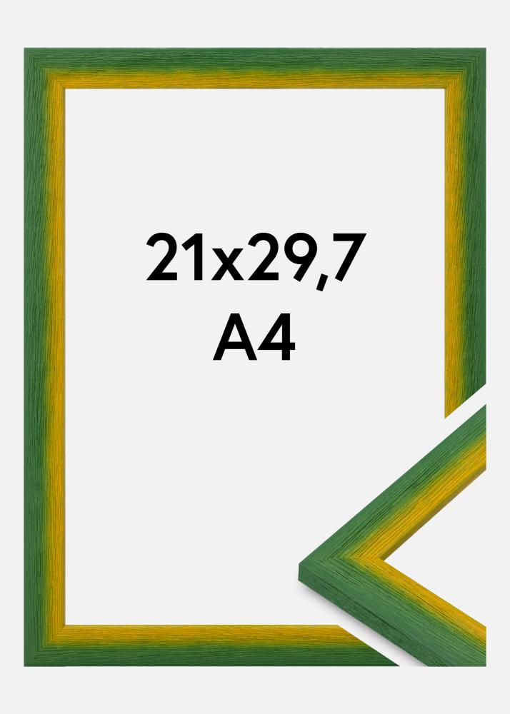 Ovaj Okvir za fotografije dimenzija 21x29,7 cm (A4) savršen je spoj modernog dizajna i prirodne ljepote. Sa svojom zelenom bojom i zlatnožutim tonovima, elegantno ističe prirodnu strukturu drva. Uski profil, s letvicom Okvira od 23 mm i dubinom od 13 mm, daje jednostavan i profinjen izgled koji omogućuje da tvoj motiv bude u središtu pažnje.