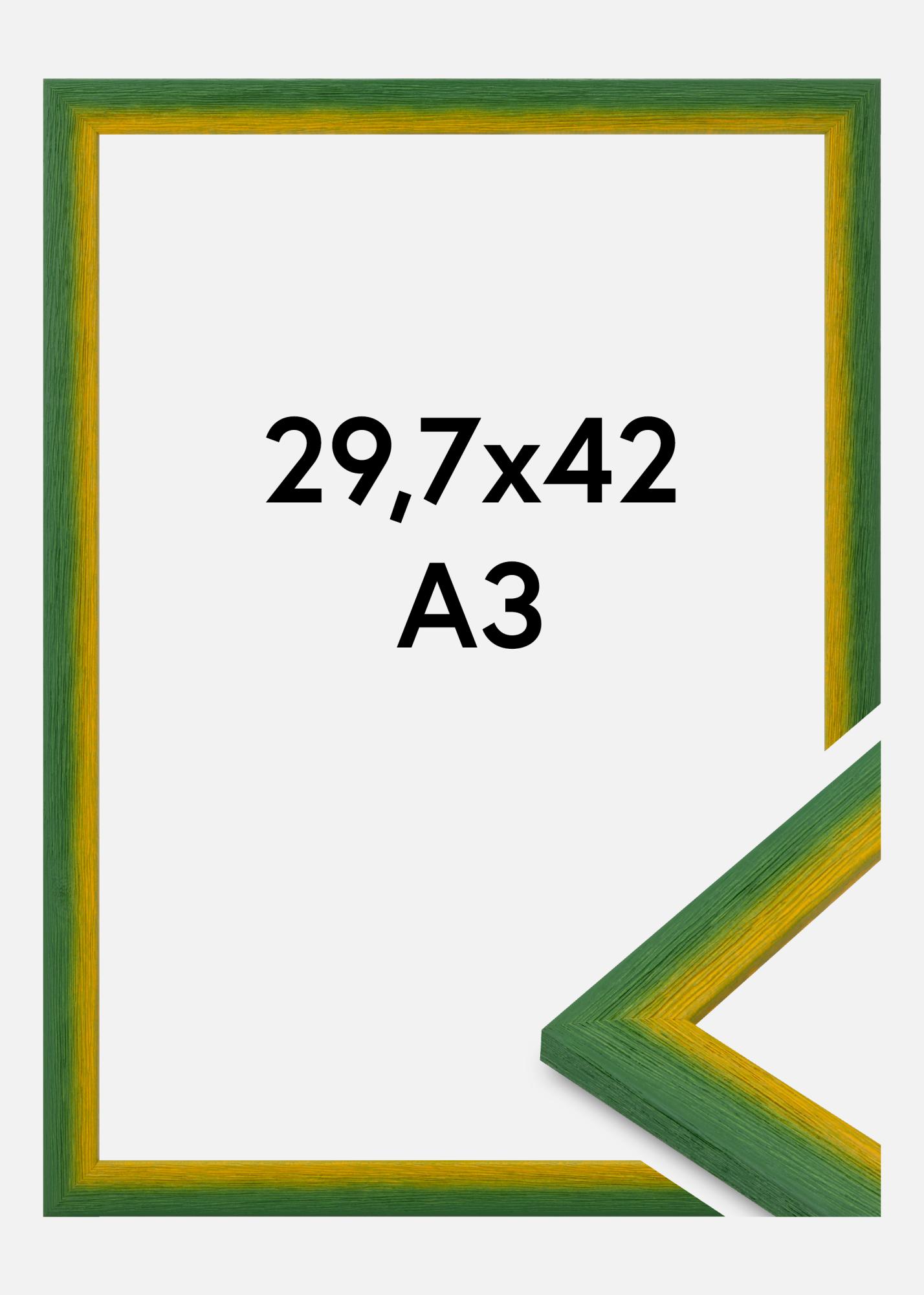 Ovaj Okvir za fotografije dimenzija 29,7x42 cm savršena je kombinacija modernog dizajna i prirodne ljepote. Sa svojom glatkom površinom i skladnom mješavinom zelenih i zlatnožutih tonova, elegantno ističe prirodnu strukturu drva. Uski profil, s letvicom Okvira od 23 mm i dubinom od 13 mm, daje jednostavan i profinjen izgled koji omogućuje da tvoj motiv bude u središtu pažnje.