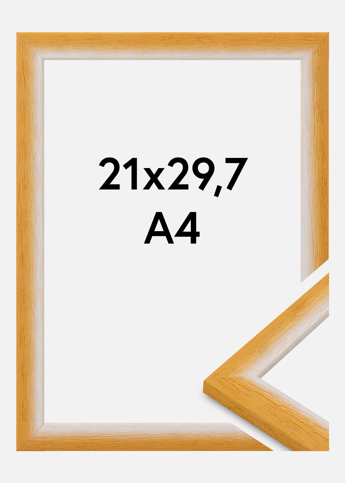 Ovaj Okvir za fotografije dimenzija 21x29,7 cm (A4) savršena je kombinacija modernog dizajna i klasične elegancije. S toplom Žuta nijansom i glatkom površinom, suptilno ističe prirodnu strukturu drva. Uski profil, s letvicom Okvira od 23 mm i dubinom od 13 mm, daje jednostavan i profinjen izgled koji omogućuje da tvoj motiv bude u središtu pažnje.