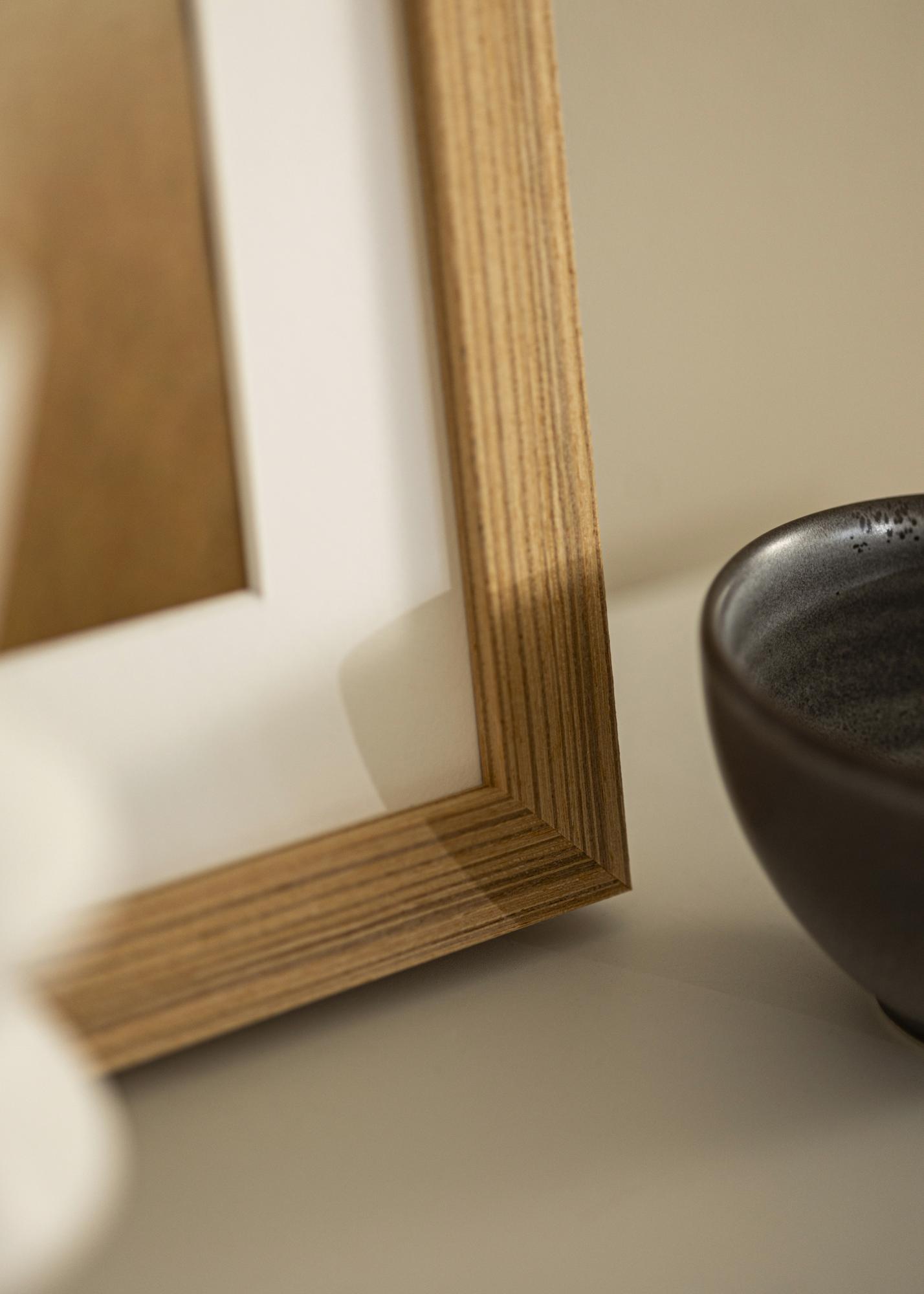 Lajsna okvira širine 28 mm i dubine 33 mm daje okviru robustan i stabilan osjećaj. Jasno vertikalno zrnatost pojačava osjećaj drva i stvara živahnu strukturu. Mat finiš naglašava prirodne varijacije hrasta bez stvaranja reflektirajućih efekata, što ga čini idealnim za prikaz vaših omiljenih slika bez ometanja.