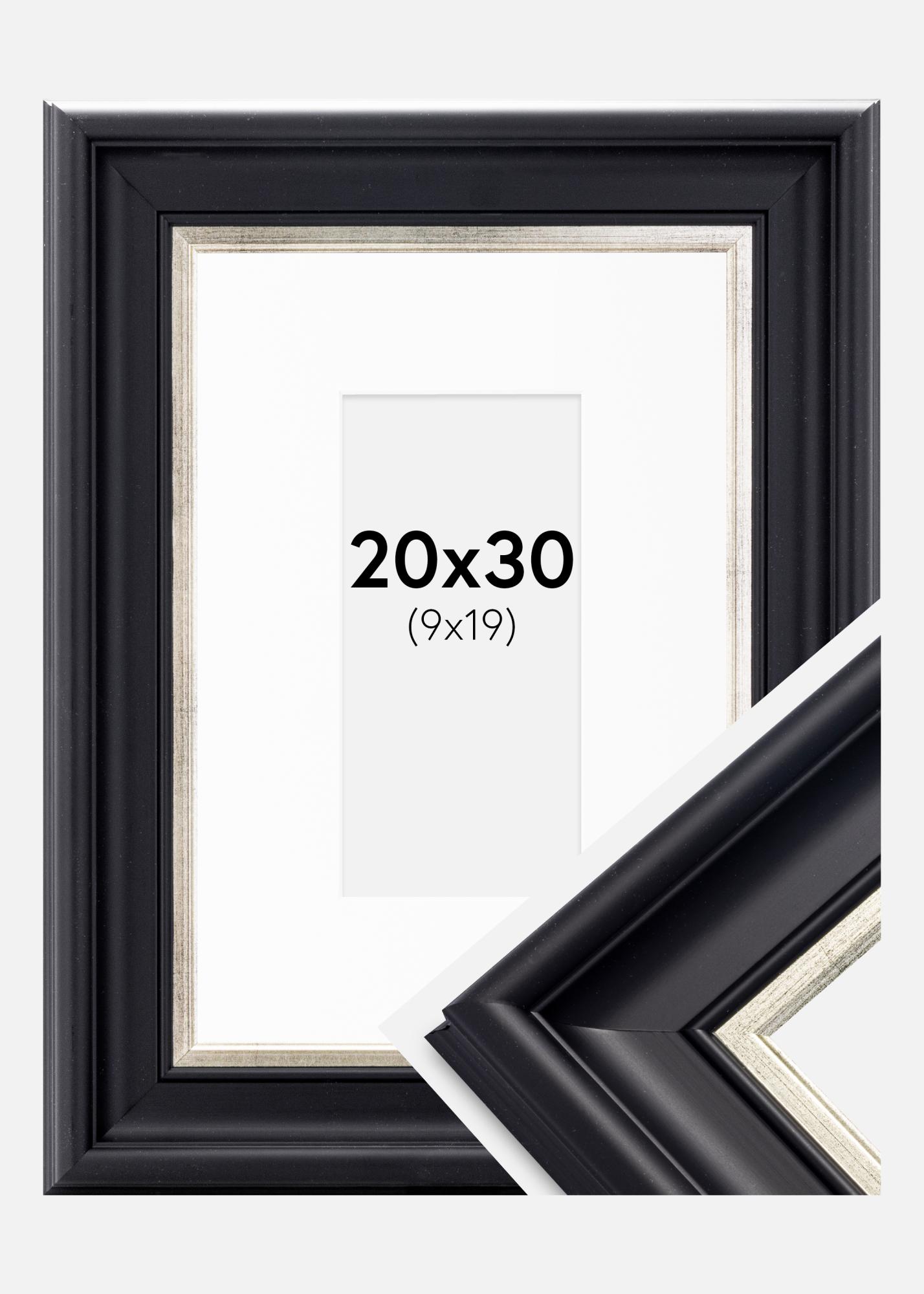 Okvir Dalarna Crno-Srebrno 20x30 cm - Paspartu Bijelo 10x20 cm
