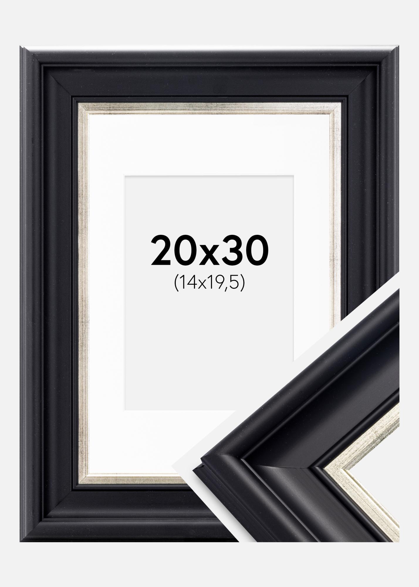 Okvir Dalarna Crno-Srebrno 20x30 cm - Paspartu Bijelo 15x21 cm (A5)