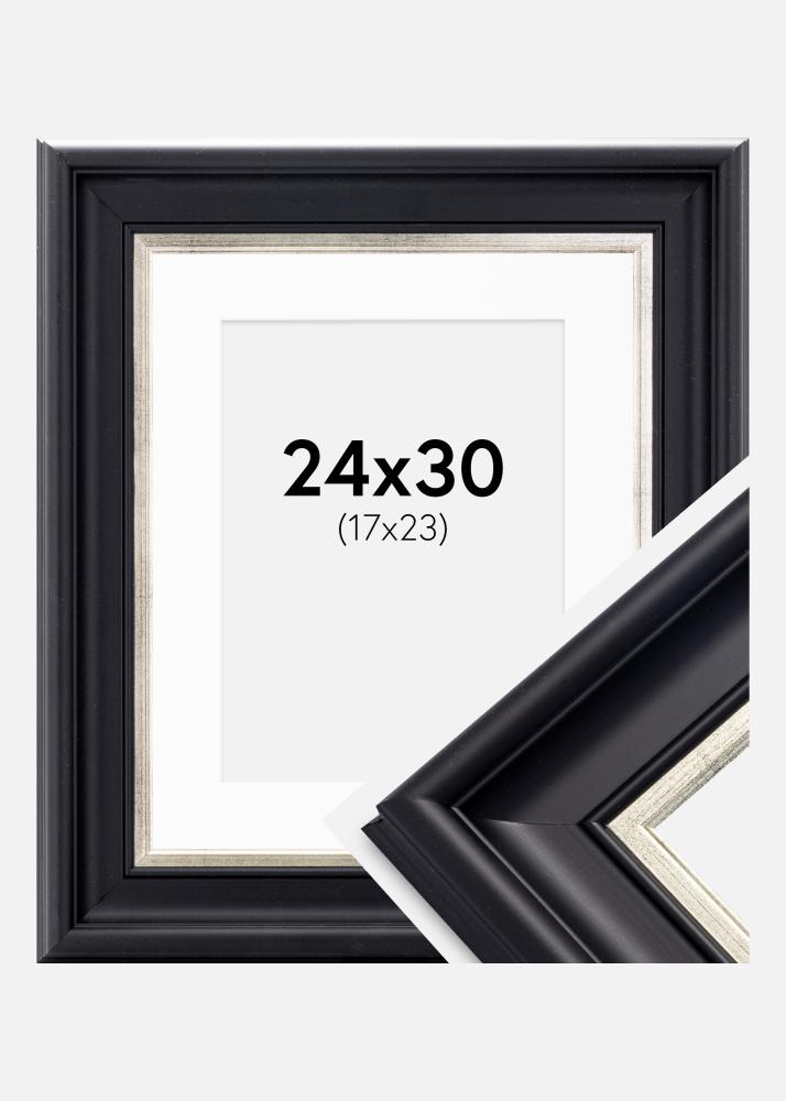 Okvir Dalarna Crno-Srebrno 24x30 cm - Paspartu Bijelo 18x24 cm