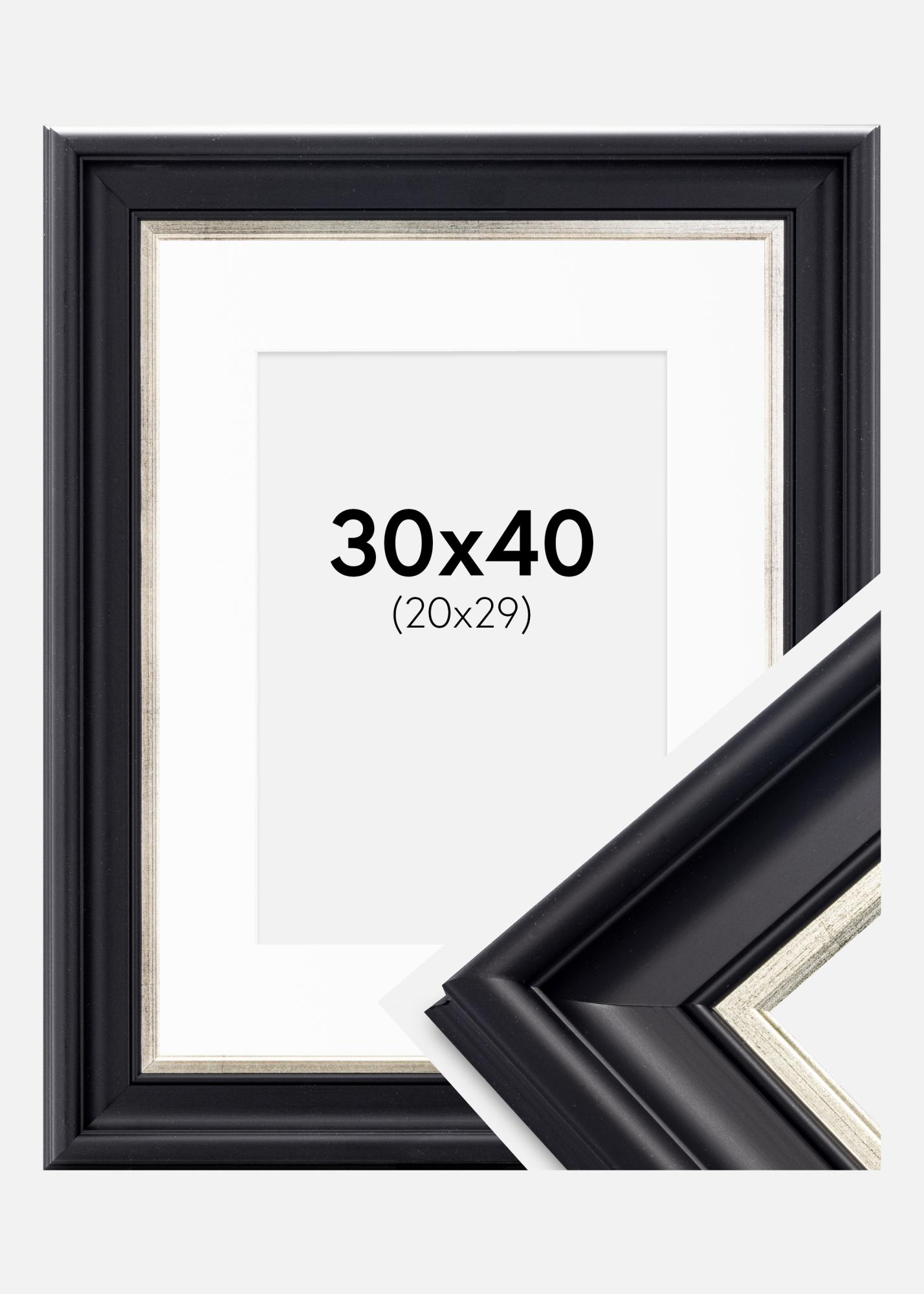 Okvir Dalarna Crno-Srebrno 30x40 cm - Paspartu Bijelo 21x30 cm