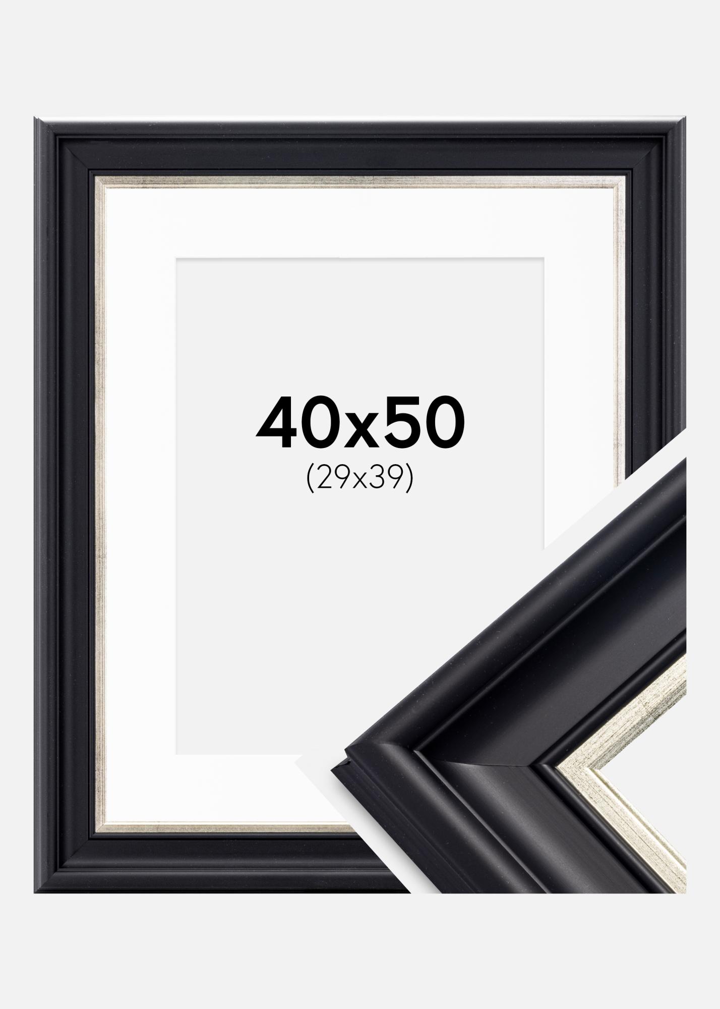 Okvir Dalarna Crno-Srebrno 40x50 cm - Paspartu Bijelo 30x40 cm