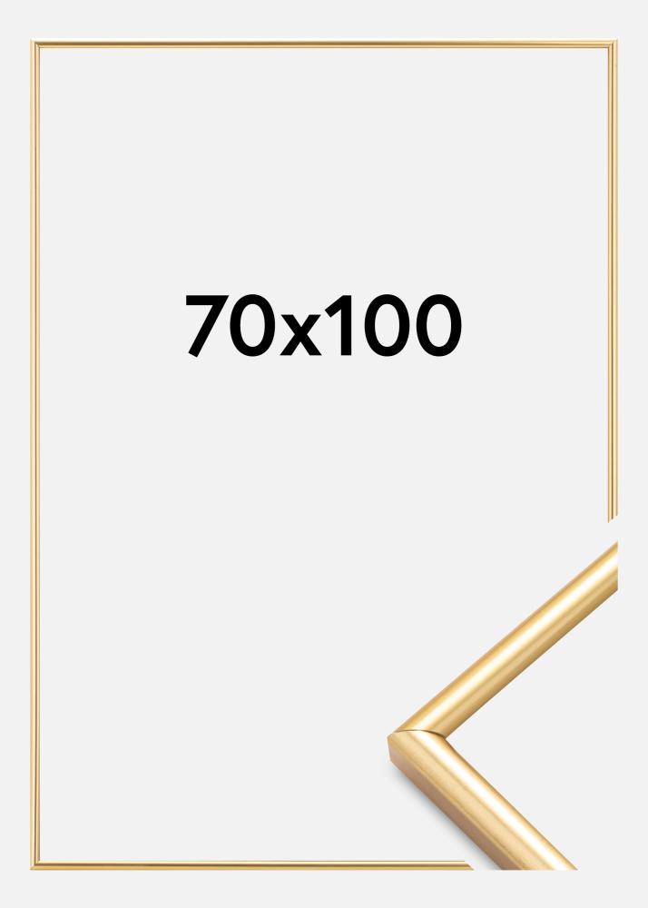 Zlatni okvir dimenzija 70x100 cm visoke kvalitete, s uskim zaobljenim profilom koji izgleda odlično uz gotovo svaki motiv. Okvir ima akrilno staklo koje omogućuje da okvir traje dulje i lakše se montira. Savršen kako za slike, tako i za plakate.